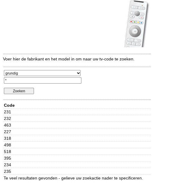 Bij de D3 zijn deze codes beschikbaar voor Grundig: