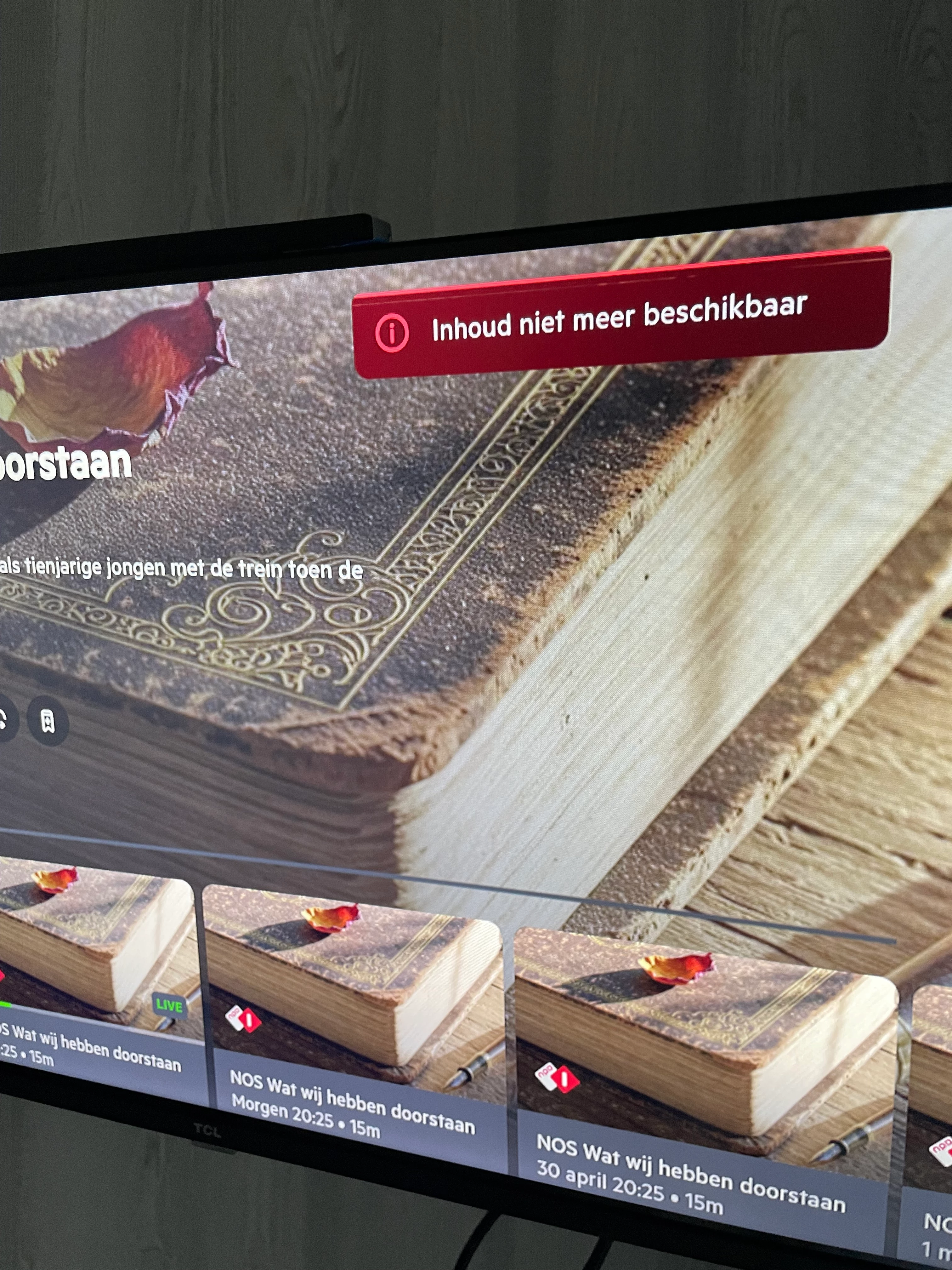 Ik krijg steeds de melding dat de inhoud niet beschikbaar is. App heeft het maanden goed gedaan. Krijg de foutmelding ook als ik programma’s gewoon live wil bekijken