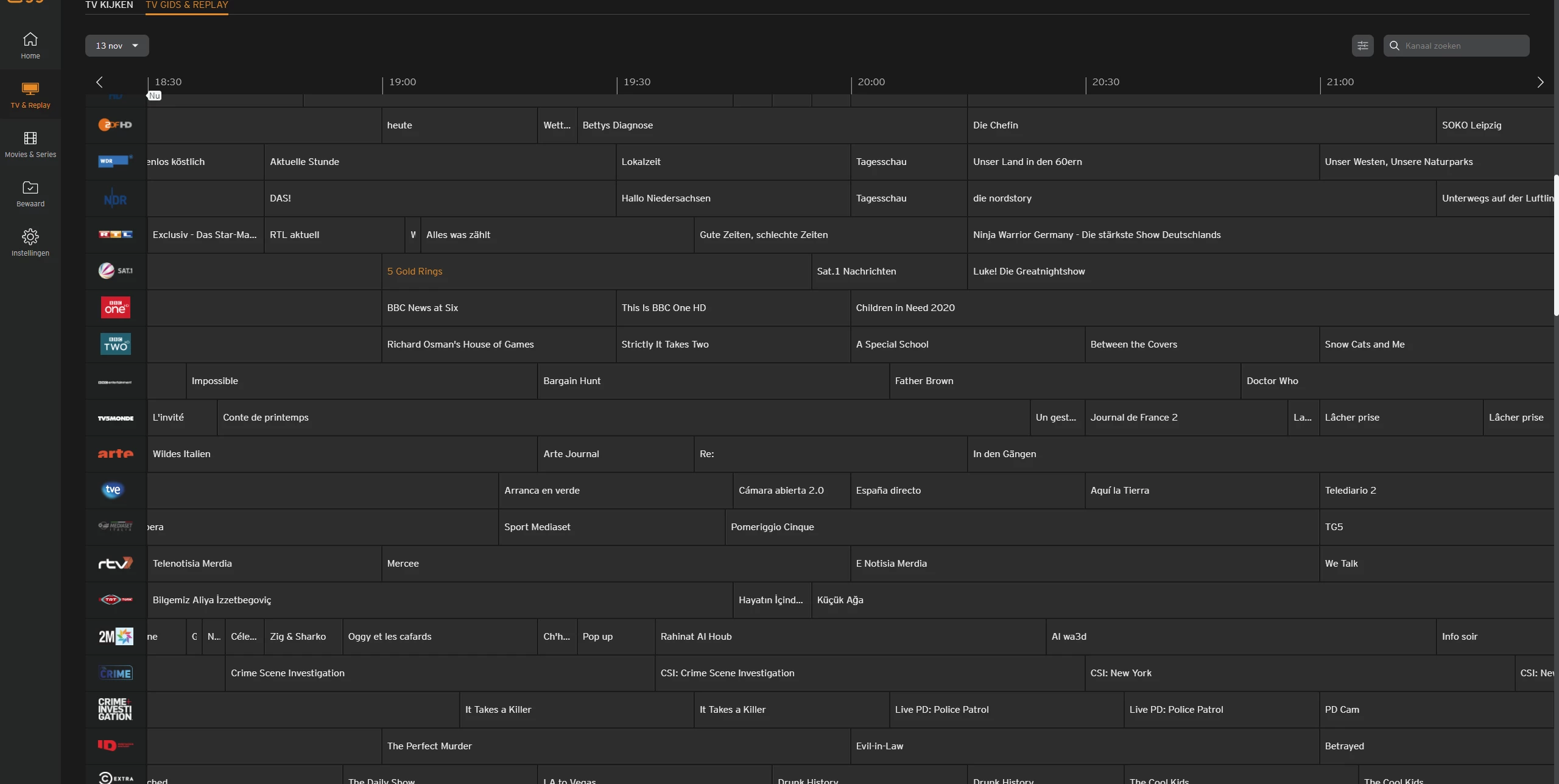 De gids is voor veel zenders nieteens 3 dagen vooruit te zien. Het is nu zondag 8-11 en check de gids eens op 11-11! Scroll dan eens door het “aanbod”