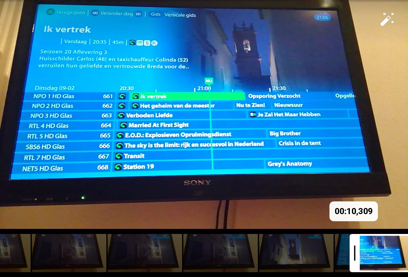 • als we een lopend programma van het begin willen zien (journaal NPO 1 van 20:00) en we drukken op de groene knop dan start het voorgaande programma. We kunnen lopende programma’s wel vanaf het begin zien via de gids