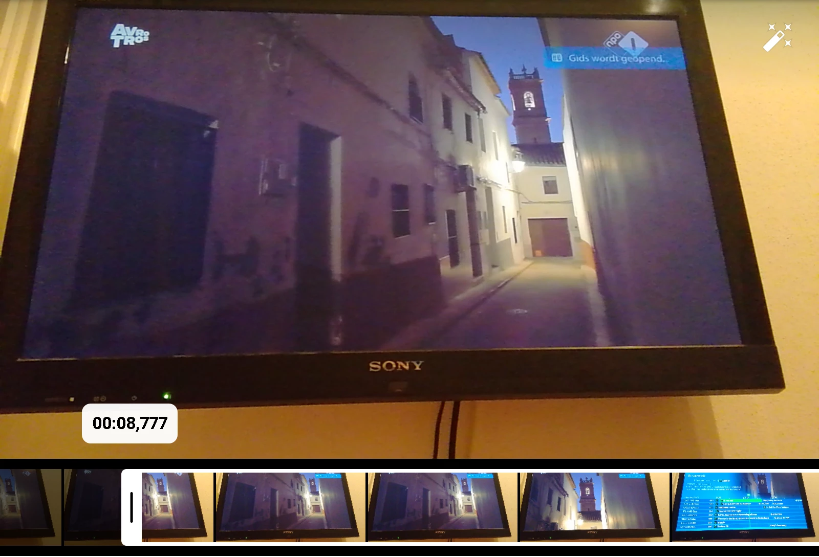 Of je drukt op de gids toets, en dan blijft die flapperen tussen horizontale en verticale weergave.