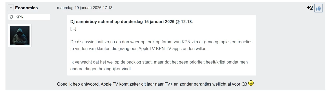 Het is veel te vrijblijvend, en inmiddels niets meer dan zoethouder vanuit KPN, vanuit de mond van de moderatoren die hier ook niets aan kunnen doen.