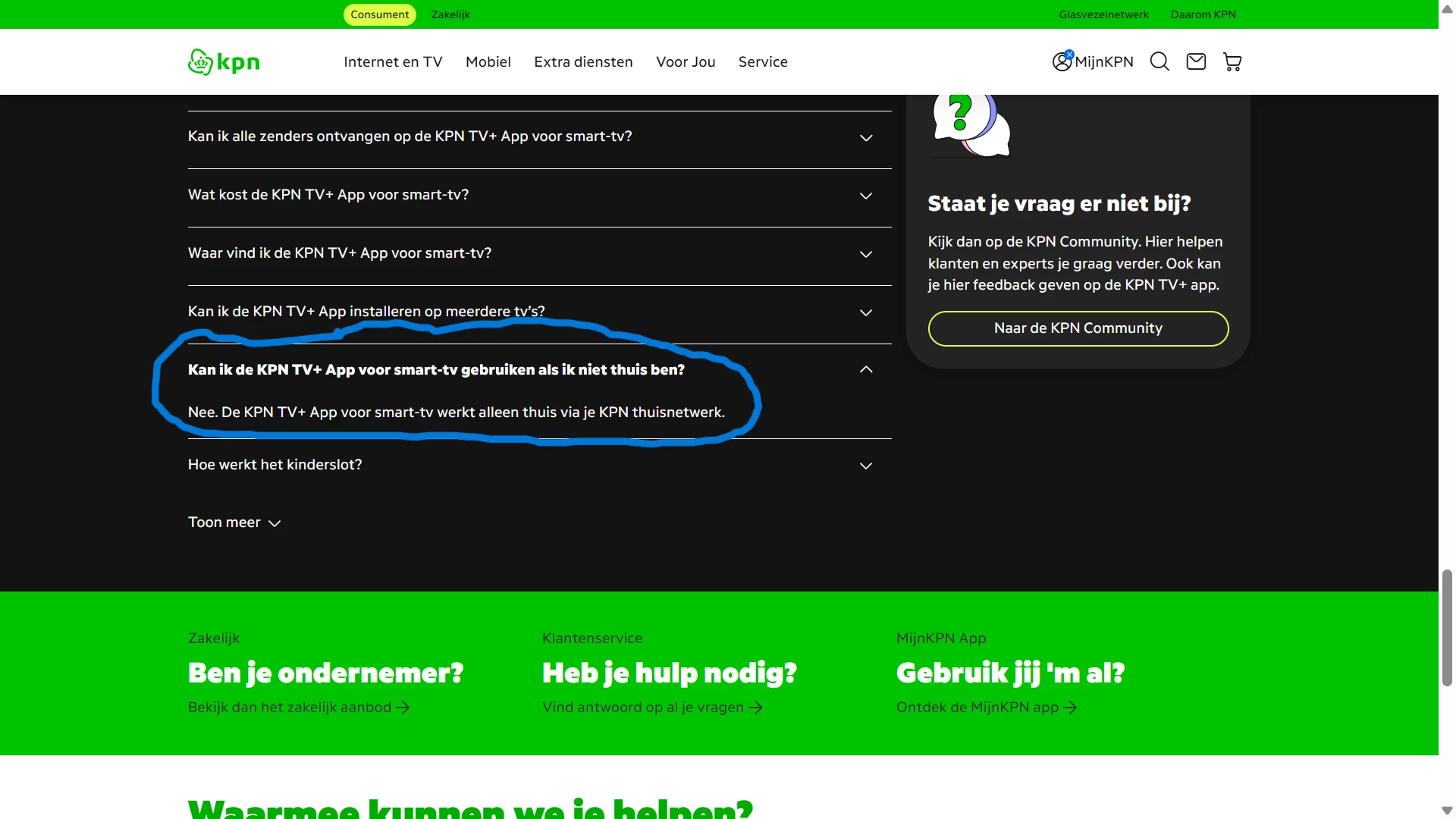 Zelfs bij je buurman in Nederland die ook kpn heeft doet dié app het niet.