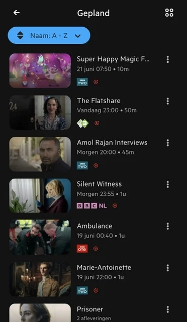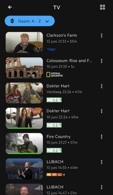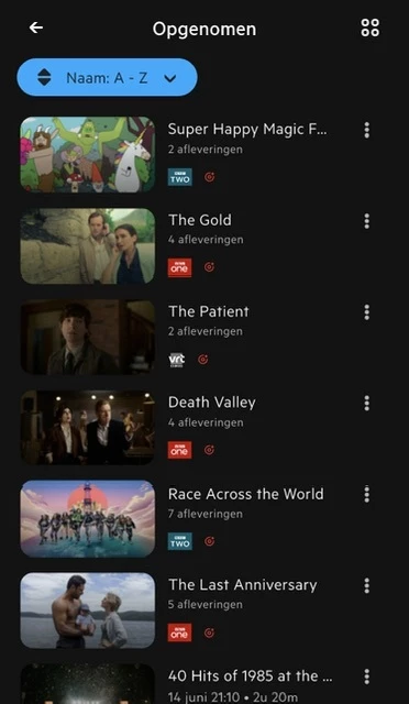 KPN TV+ App: opnames sorteren op alfabet werkt nog steeds niet goed