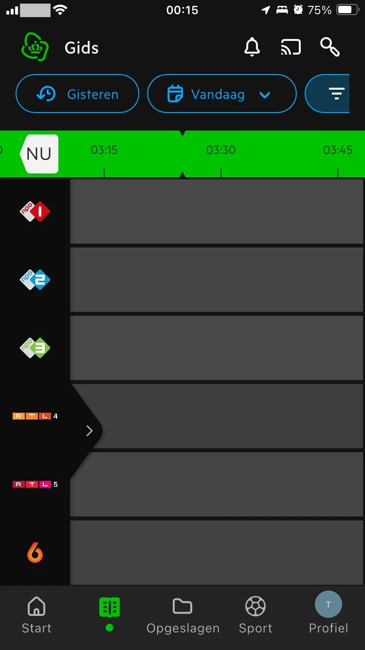 Ik kijk via de chromecast en moet met de gids tussen zenders zappen, deze is s nachts volledig weg.