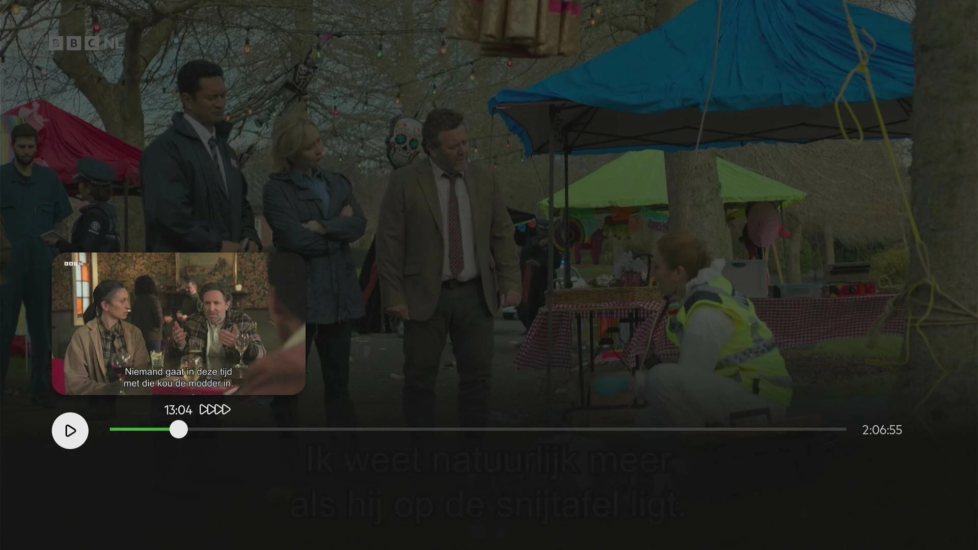 Je kunt nu ook sneller doorspoelen: afhankelijk van de lengte van het programma ga je nu veel sneller van het begin naar het einde. De pijlen onder de thumbnail geven aan hoe snel je spoelt.