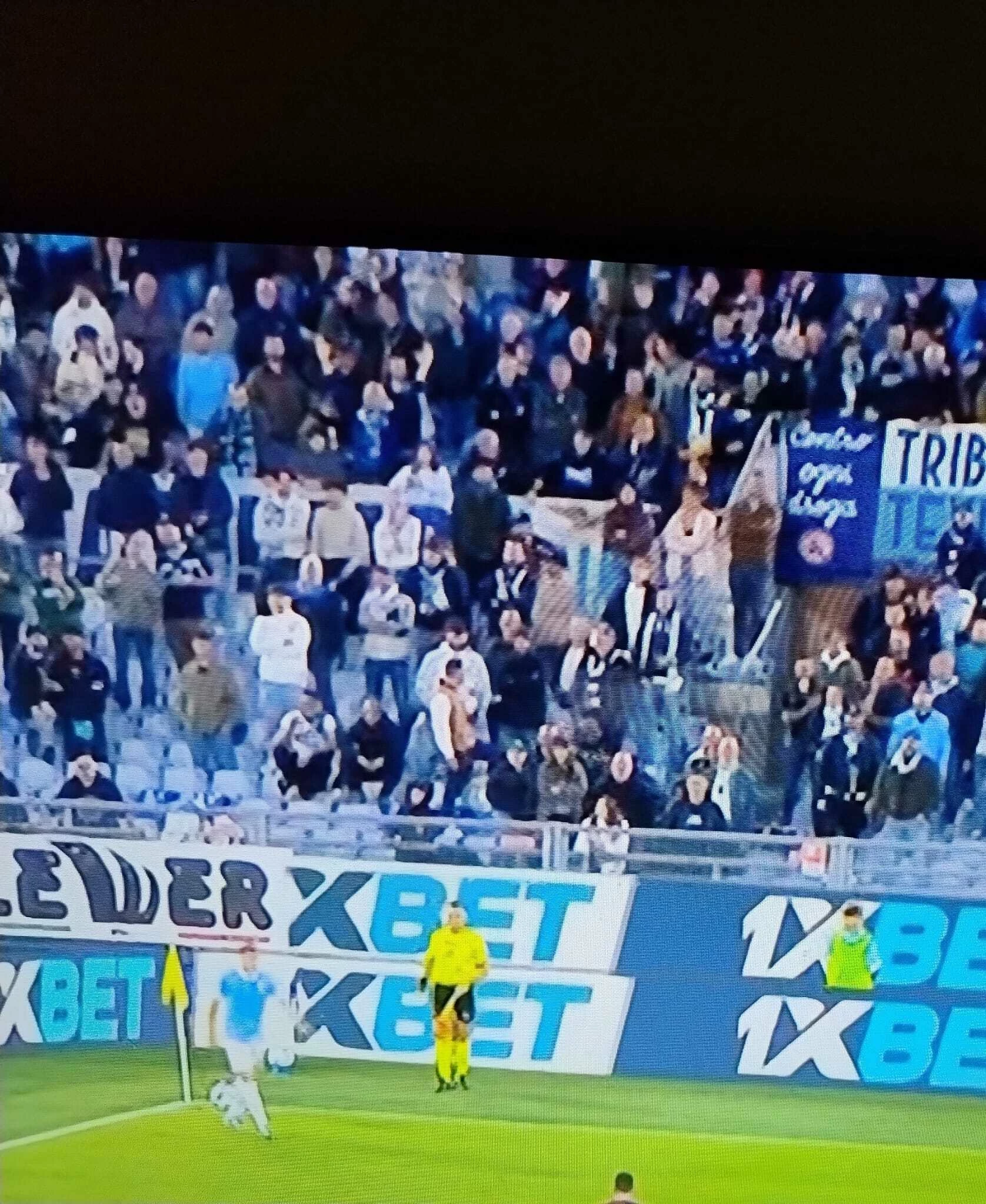 Hier een foto van als ik dicht bij het beeld ga staan. Ik weet dat je dan natuurlijk geen haarscherp beeld hebt, maar de wazige gezichten op de tribune laten wel zien dat het geen topkwaliteit is.