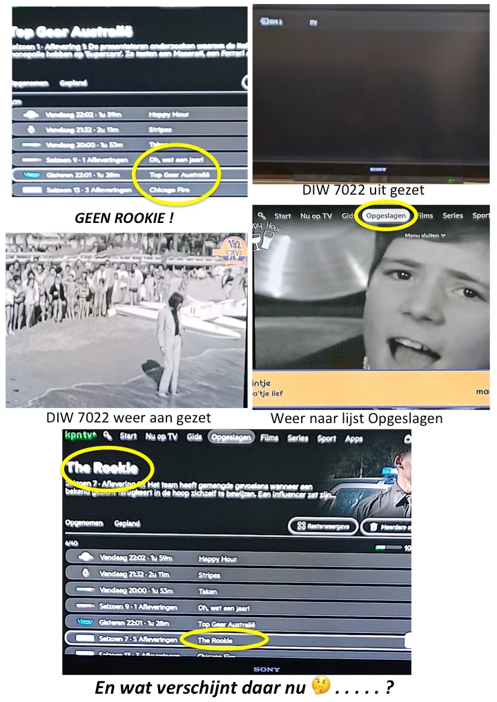 Bij het kijken van b.v. een opname en je spoelt deze diverse keren vooruit is regelmatig de DIW7022 kompleet het spoor bijster en kan je pas weer TV kijken als hij uit en aan gezet is.
