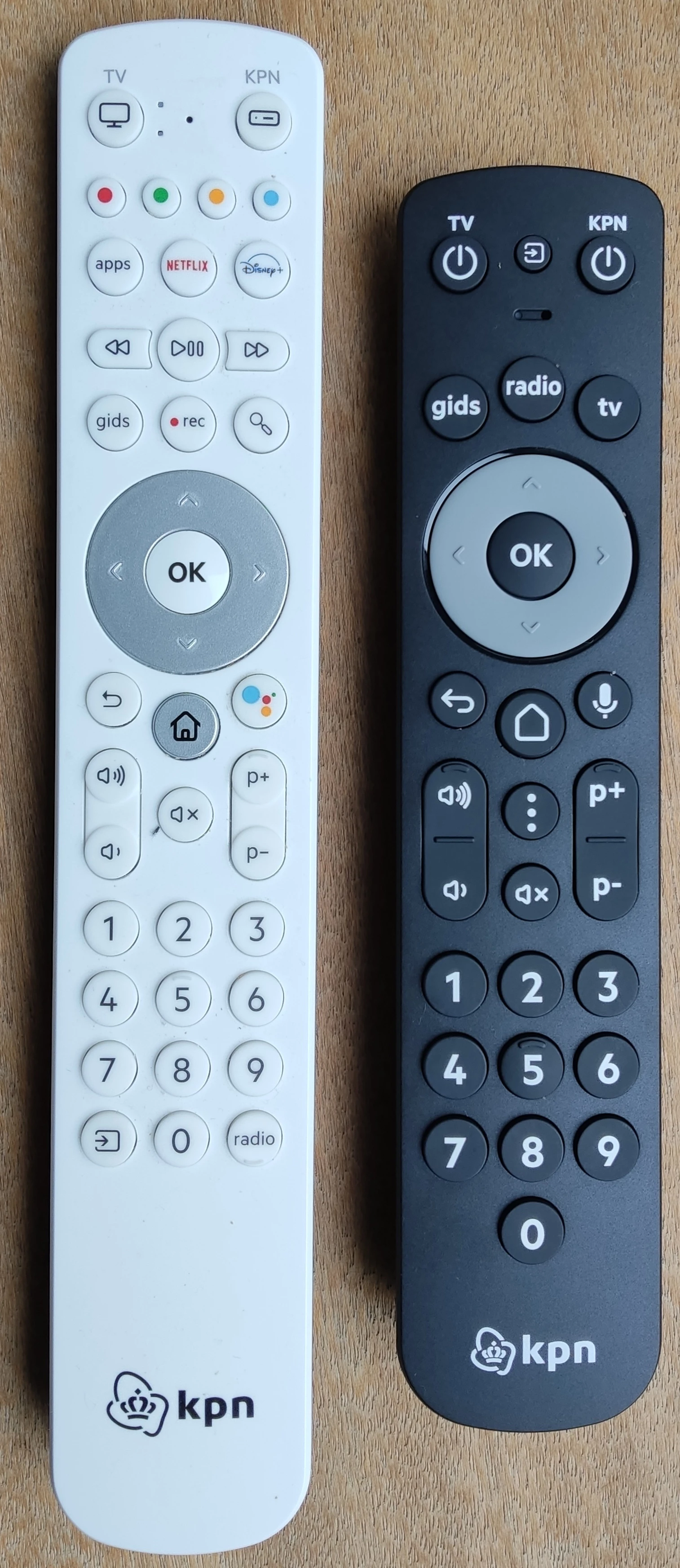 Op de foto is rechts de nieuwe afstandsbediening