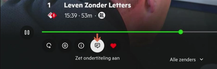 Goed om te weten dat je een KPN TV+ box (DIW7022) hebt. Hoe zet je precies de ondertiteling uit? Doe je dat via de zapbanner (zie hieronder)? Dat is de snelste manier in ieder geval.