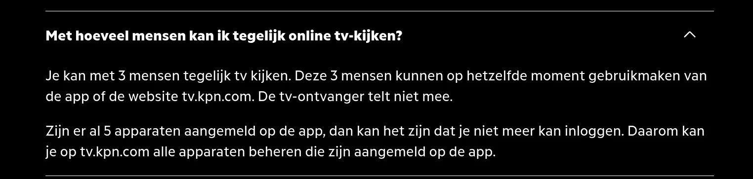 Het screenshot wat jij geeft ​@Rowi. betreft de MOBIELE app. Daar kunnen nog steeds 3 tegelijk gebruik van maken hoor. ​@Sanne van KPN