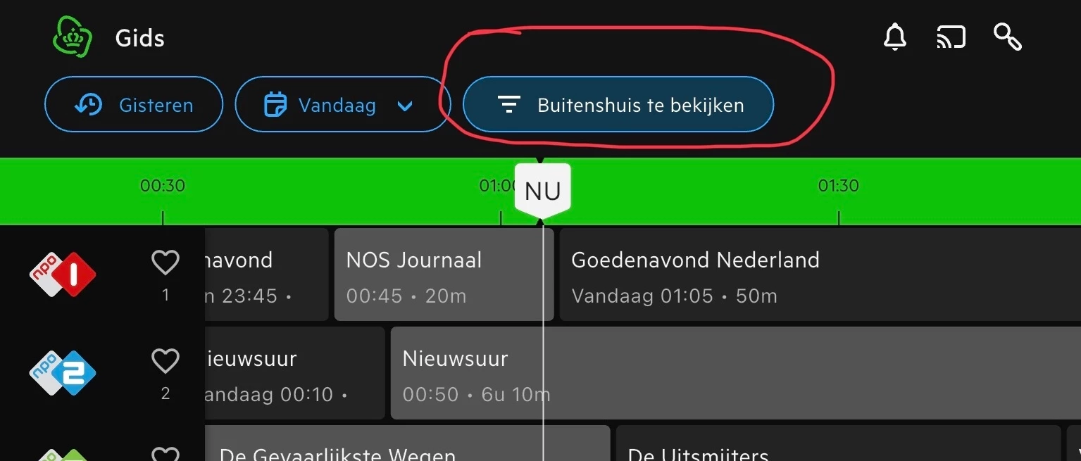 VRT trouwens ook alleen opnames, terugkijken via de gids is voor deze zenders ook niet mogelijk op de tv ontvanger.