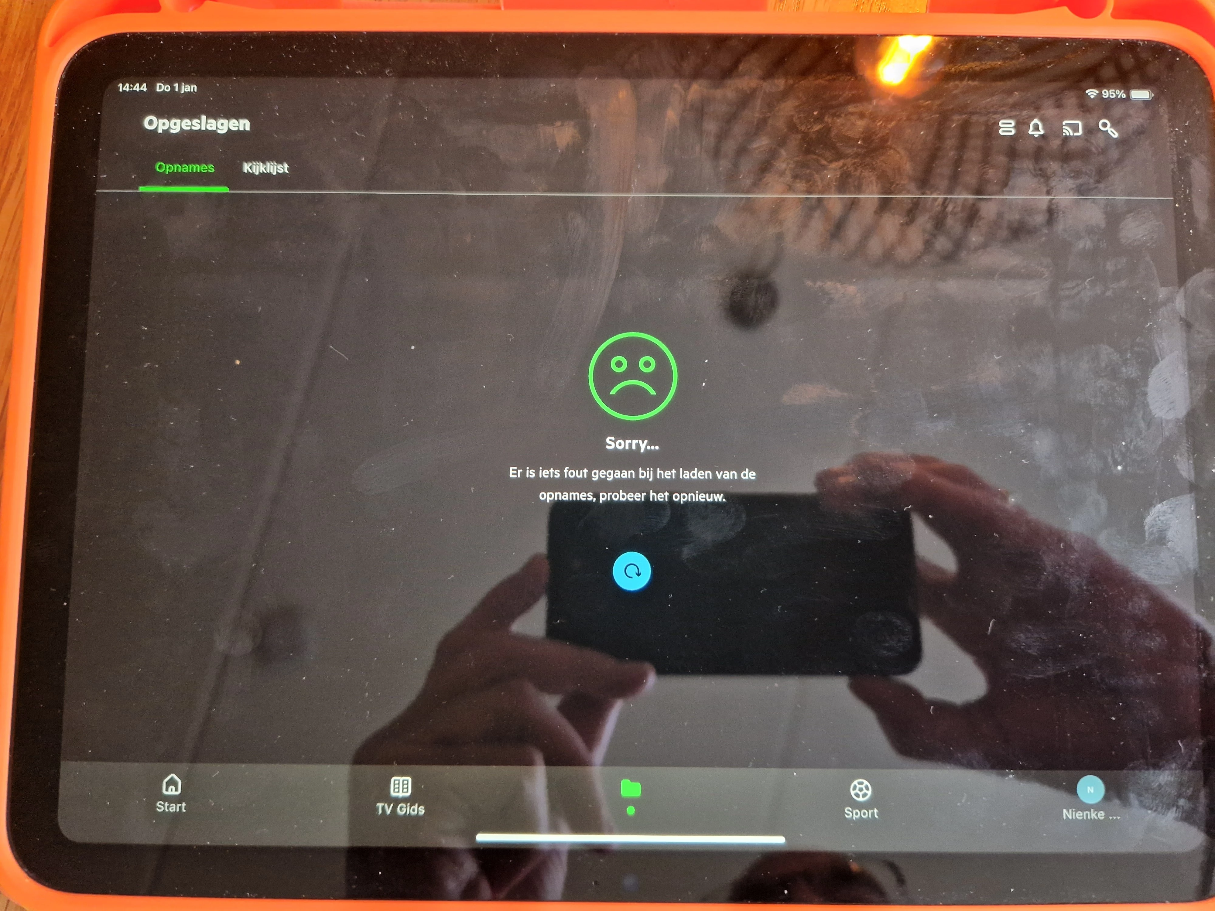 Het gaat om de kpn app, opgeslagen films zijn niet zichtbaar en hij zegt iets van ‘oeps kan ik niet downloaden’