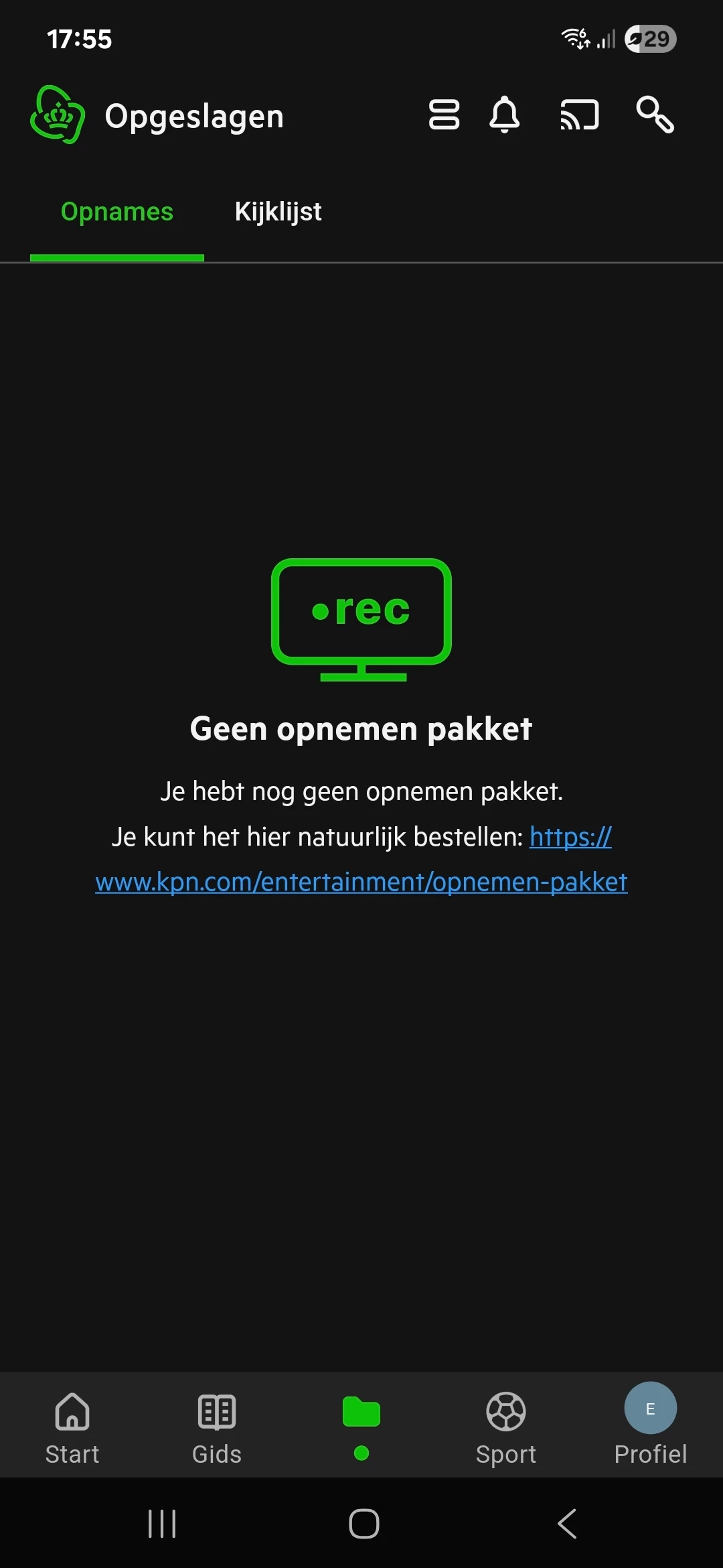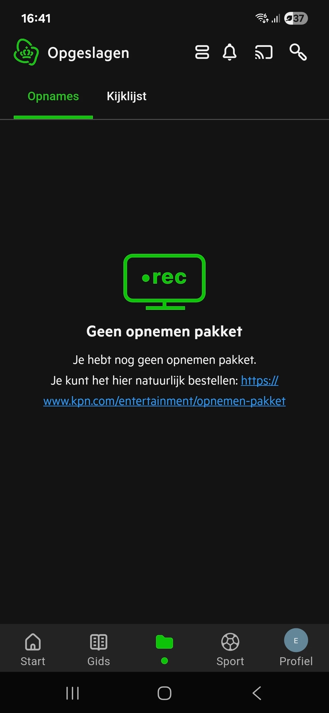 Goed nieuws! Opnames zouden nu weer altijd zichtbaar moeten zijn in de KPN TV+ app, ook als je het Opnemen Pakket Extra hebt.