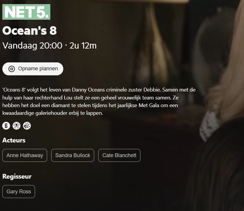 dus bij opnames zie je ook alleen programma beschrijving en geen acteurs of regisseur