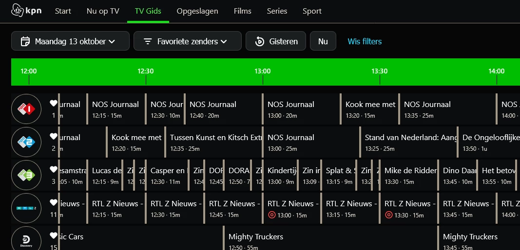 Maar: in de gids op de decoder staan die niet, behalve één, nl. die van 13:30.