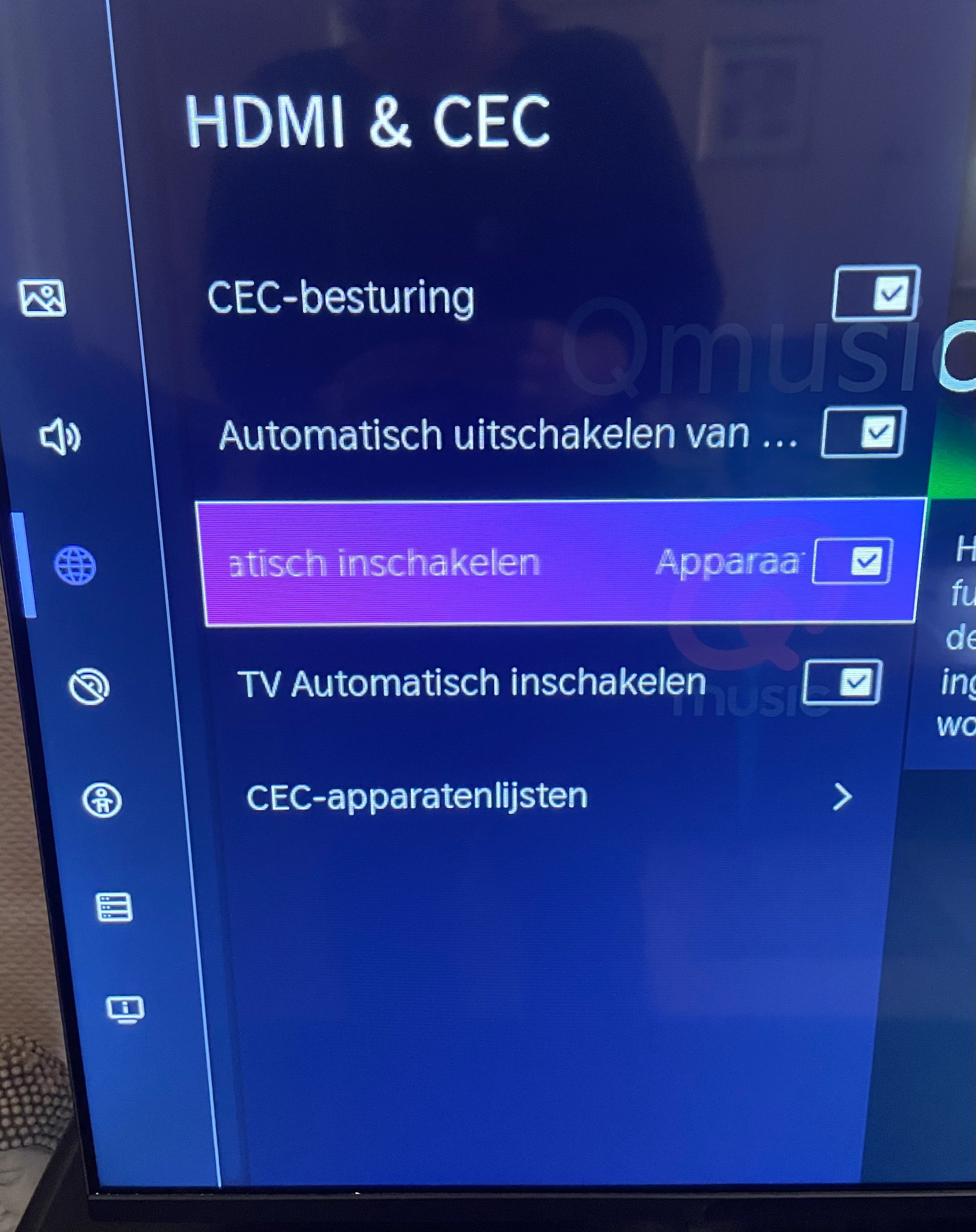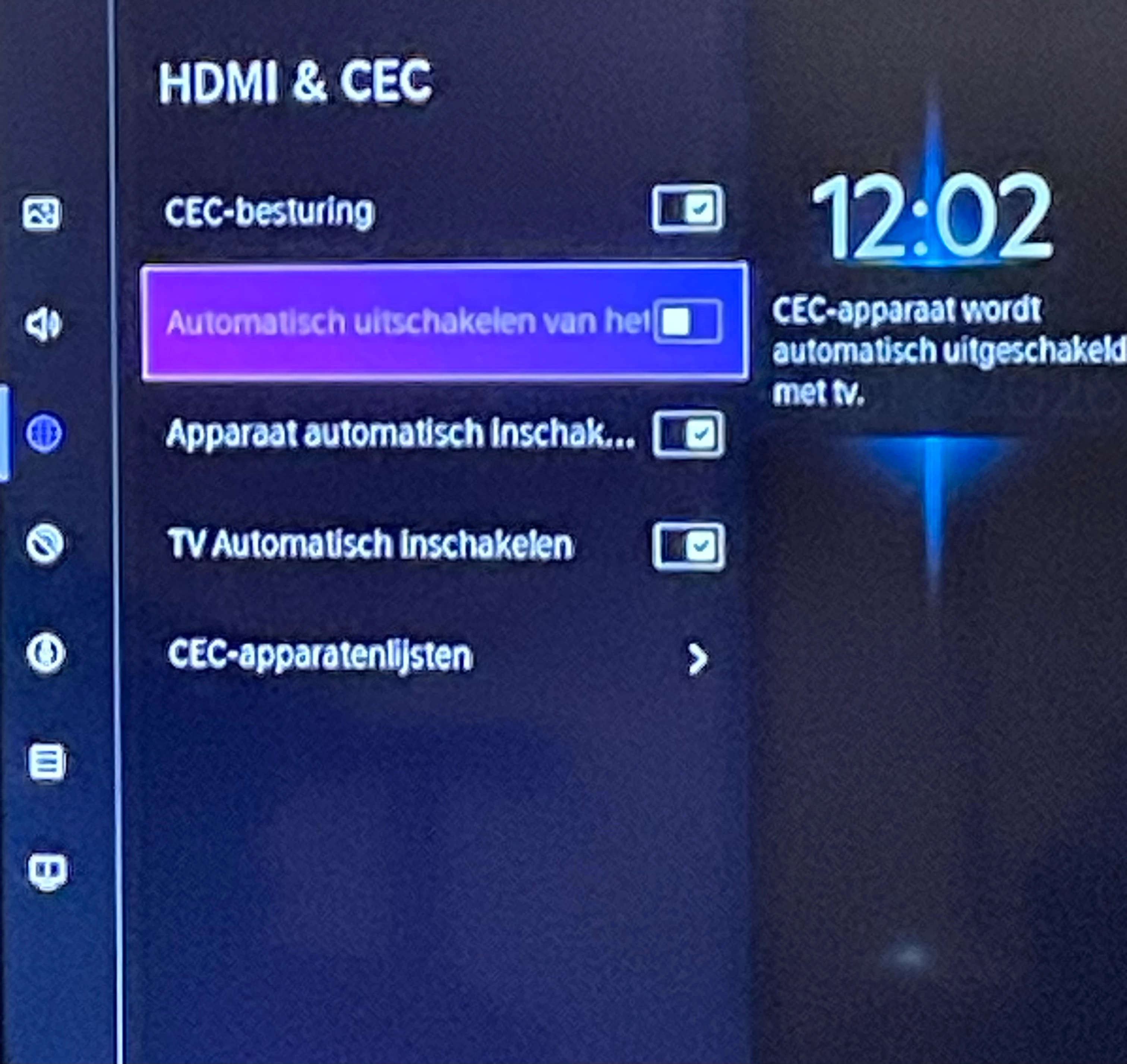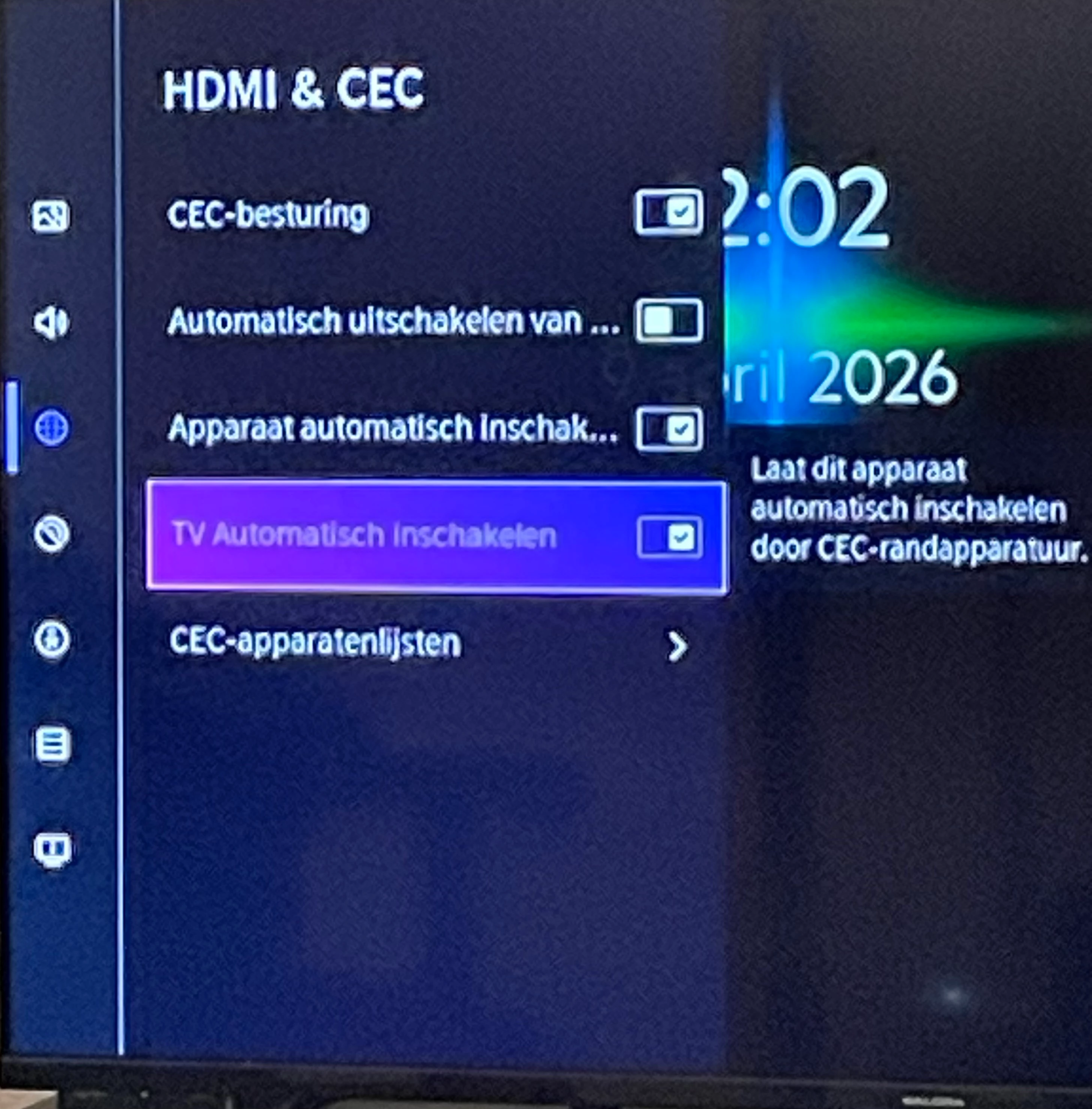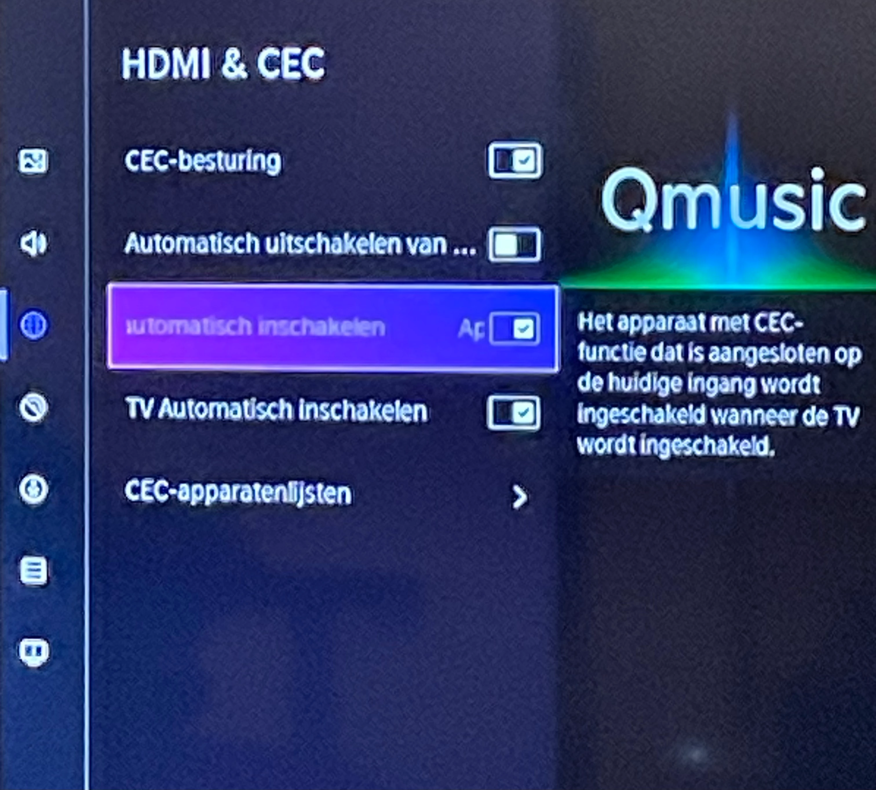 In een tv kan CEC doorgaans alleen aan of uit. Zoals in m'n Samsung (uit 2019).