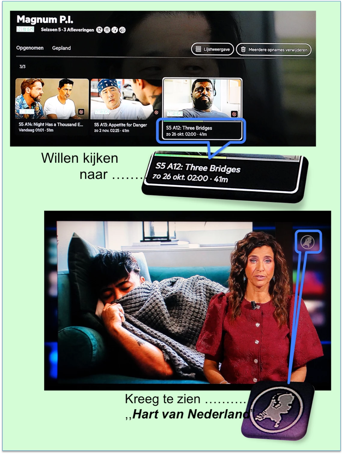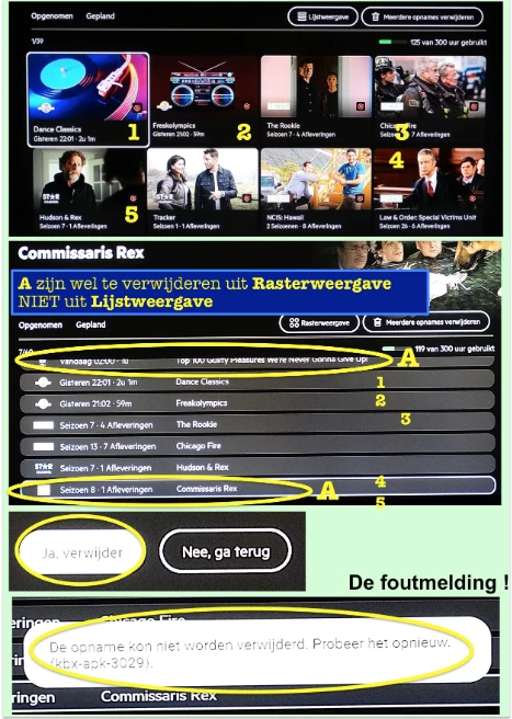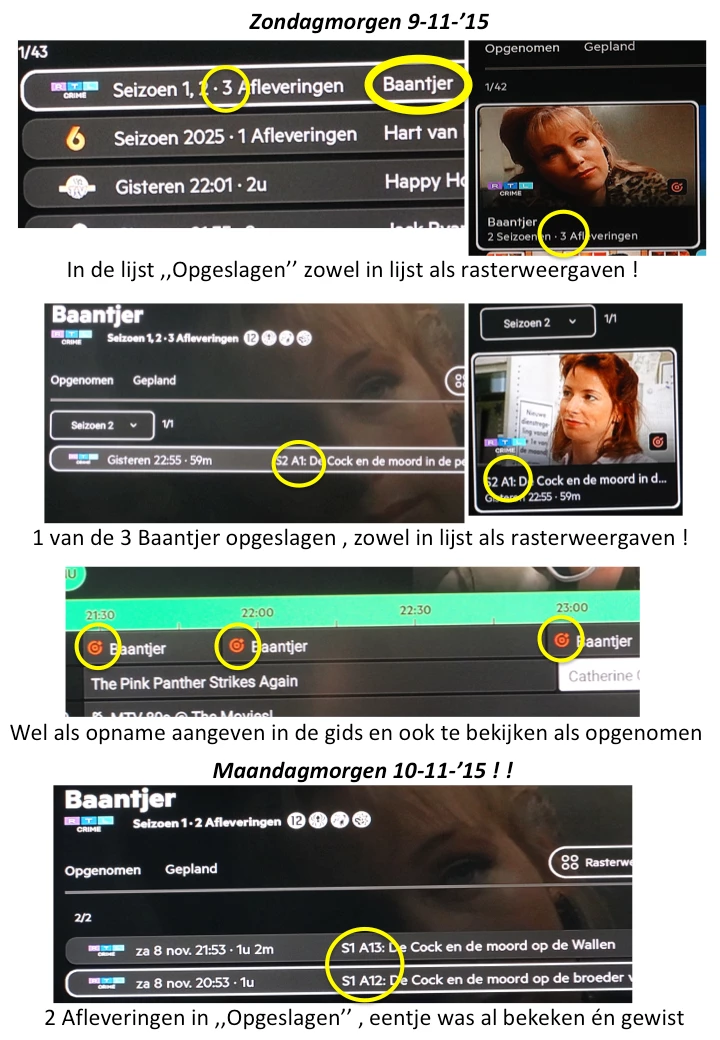 Serie opnames niet gemaakt, niet te wissen en wél te bekijken vanuit de gids