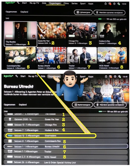 Het betreft overigens niet alleen de gids en/of ,Opgeslagen’ , als je intensief aan zappen , scrollen in de gids of lijst ,Opgeslagen’ bezig bent lijkt het alsof het hele systeem van slag raakt en zomaar naar Netflix , You Tube , Home etc gaat.