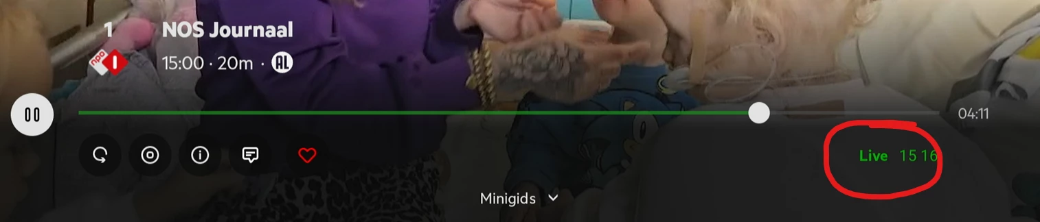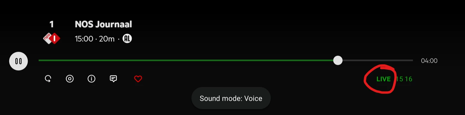 Wanneer het beeld één seconde stil staat, zie je dan toevallig in de player “LIVE” omspringen naar “Live”? Hier een voorbeeld: