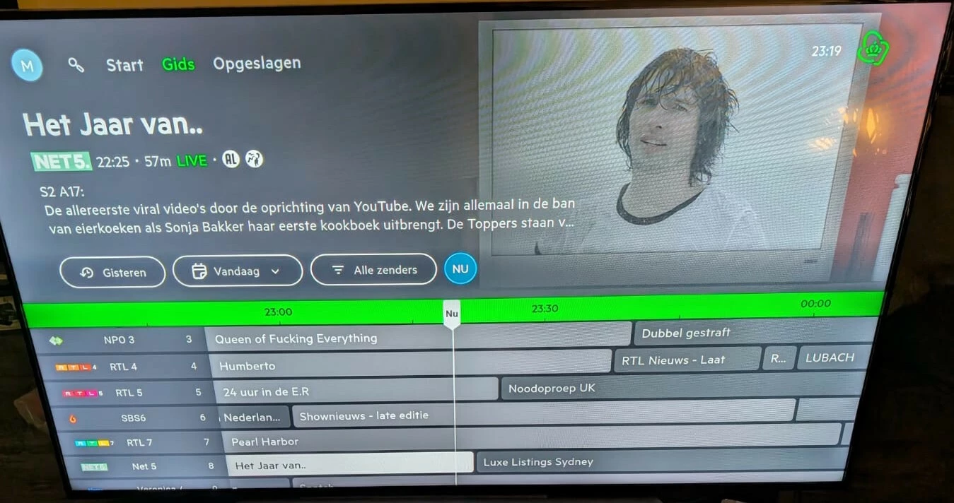 Ik zag op de telefoon als op de Chromecast TV exact hetzelfde gedrag, inmiddels gaat de gids wel verder op de Pixel als je even de gids heen en weer schuift. Maar Chromecast TV blijft hetzelfde; na 00:00 houd de gids op… programma's die eerder beginnen en 00:00 overschrijden spelen nog wel tot het einde, maar daarna alleen maar niet selecteerbare grijze balken. Het is alsof de zenders dan niet meer beschikbaar zijn, want ook het overzicht van favoriete zenders is dan leeg… maar als bijvoorbeeld er dus nog 1 programma loopt na die tijd zie ik die zender nog wel bij favorieten, totdat het is afgelopen en dan is het allemaal grijze balken en kan niets selecteren en verdwijnt de zender ook bij favorieten. Ik kan dit net zoals op de telefoon dan niet even ‘heen en weer’ schuiven, want ik kan gewoon helemaal niet navigeren. Als ik in de loop van de volgende dag de boel weer start is de gids weer gevuld en alle favoriete zenders zijn weer terug. Dat is nu een week of 2/3.