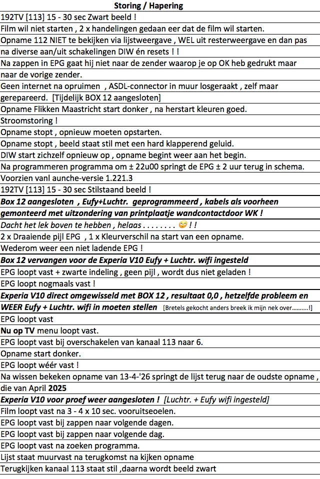 Of je deze nu bekabeld aansluit op de modems Experia 10 of 10A , het blijft de hierboven aangegeven problemen geven.