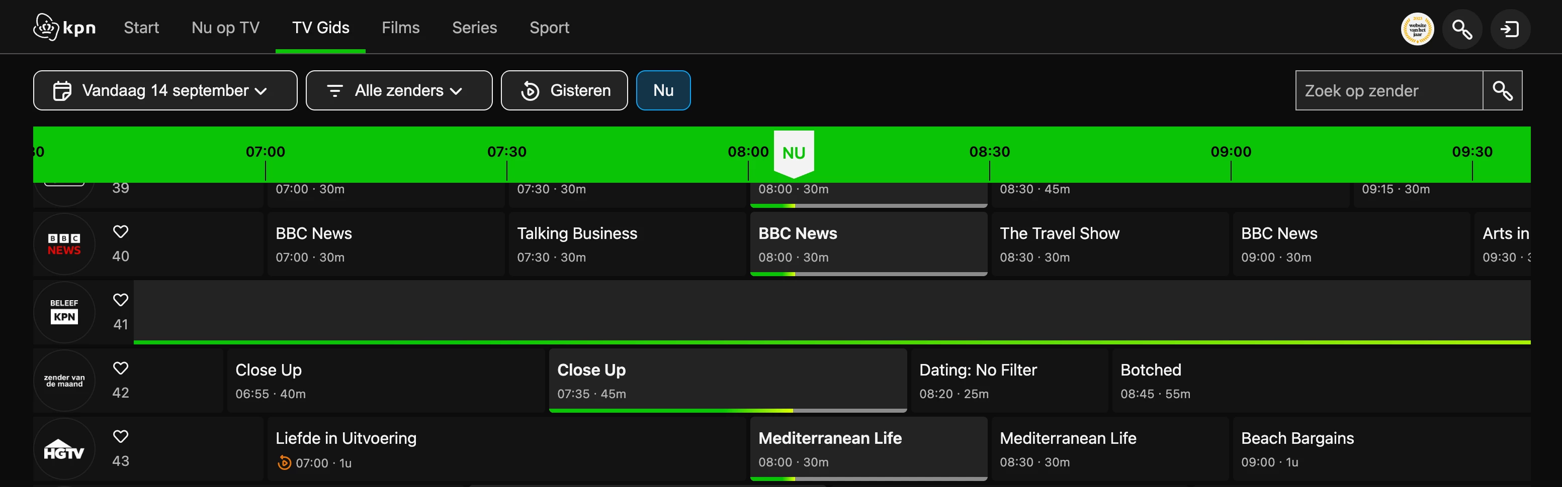 Ik denk niet dat er iemand luistert, maar ik zag net dit op tv.kpn.com: