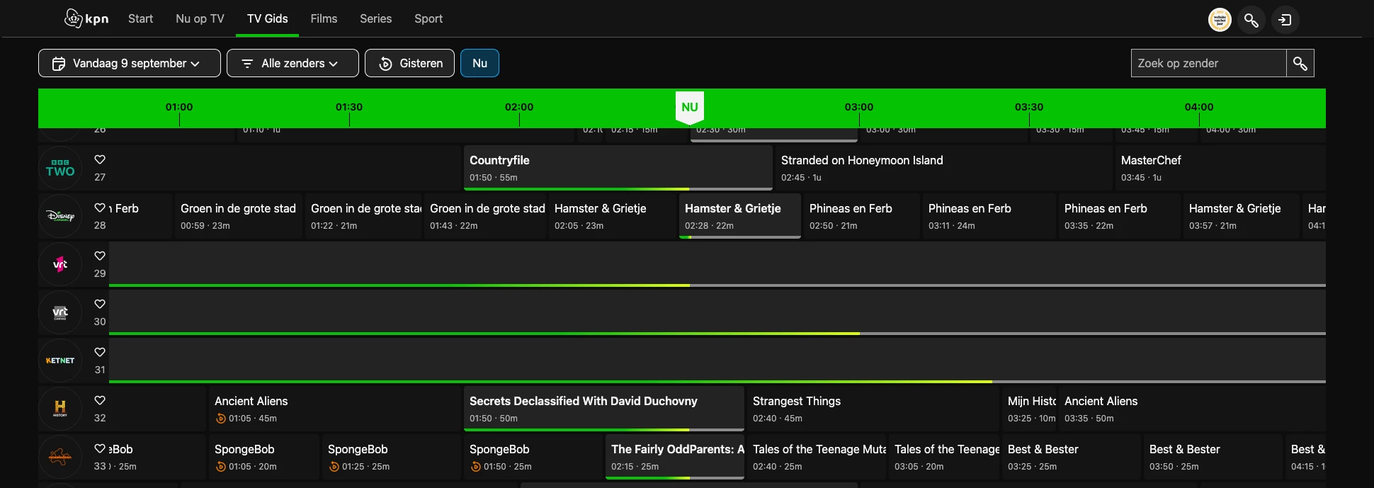 Gids op tv.kpn.com: verkeerde uitlijning voortgangsbalken voor middernacht (23:53 uur)