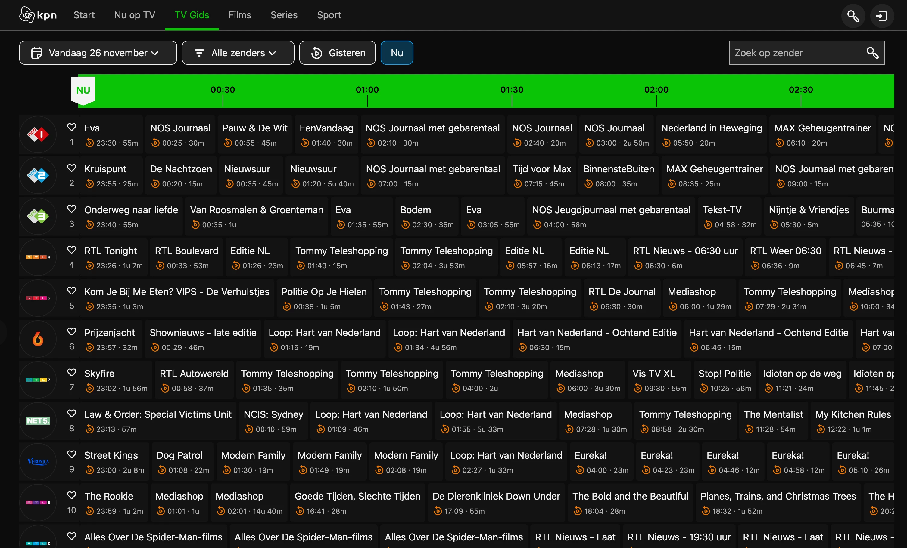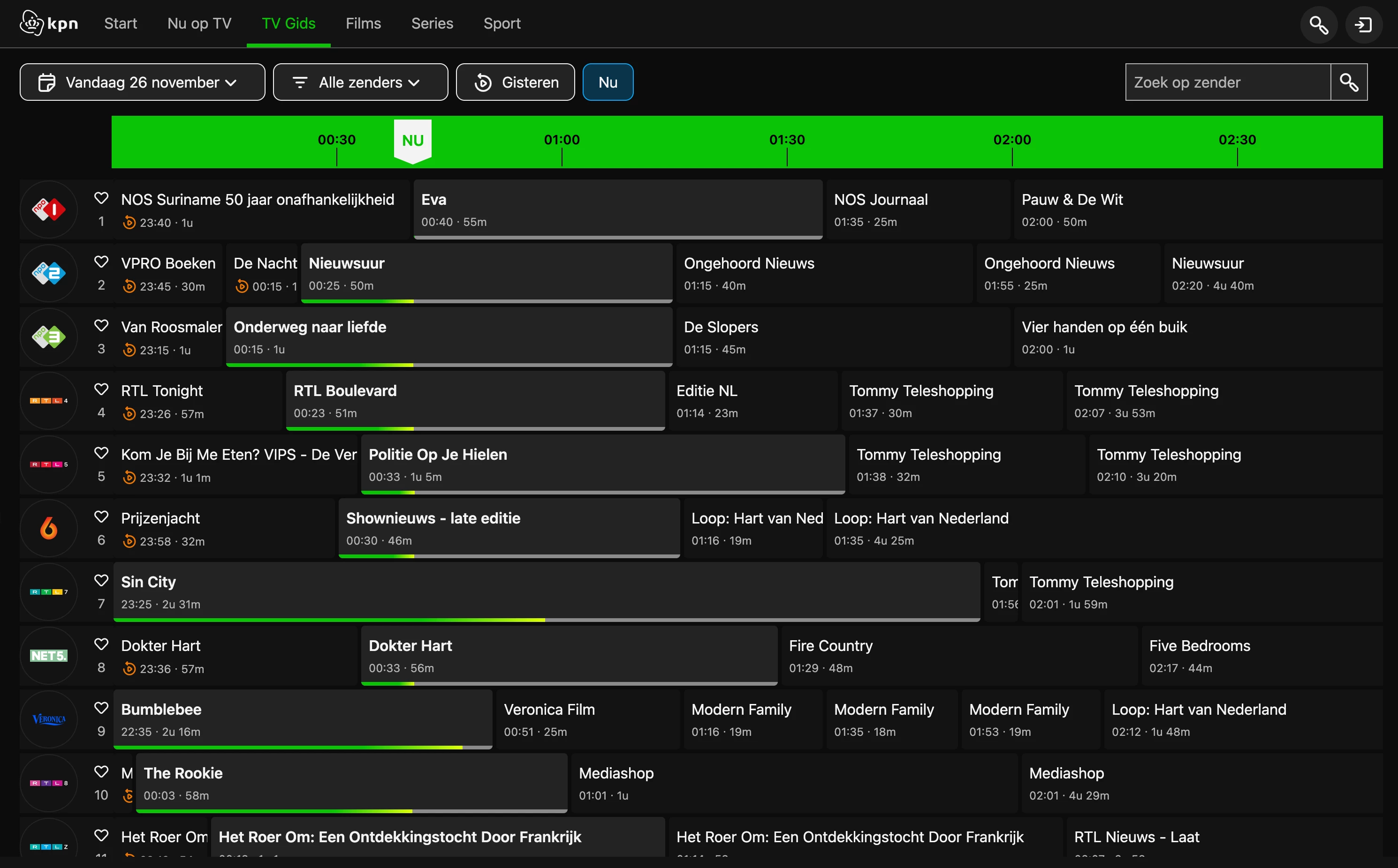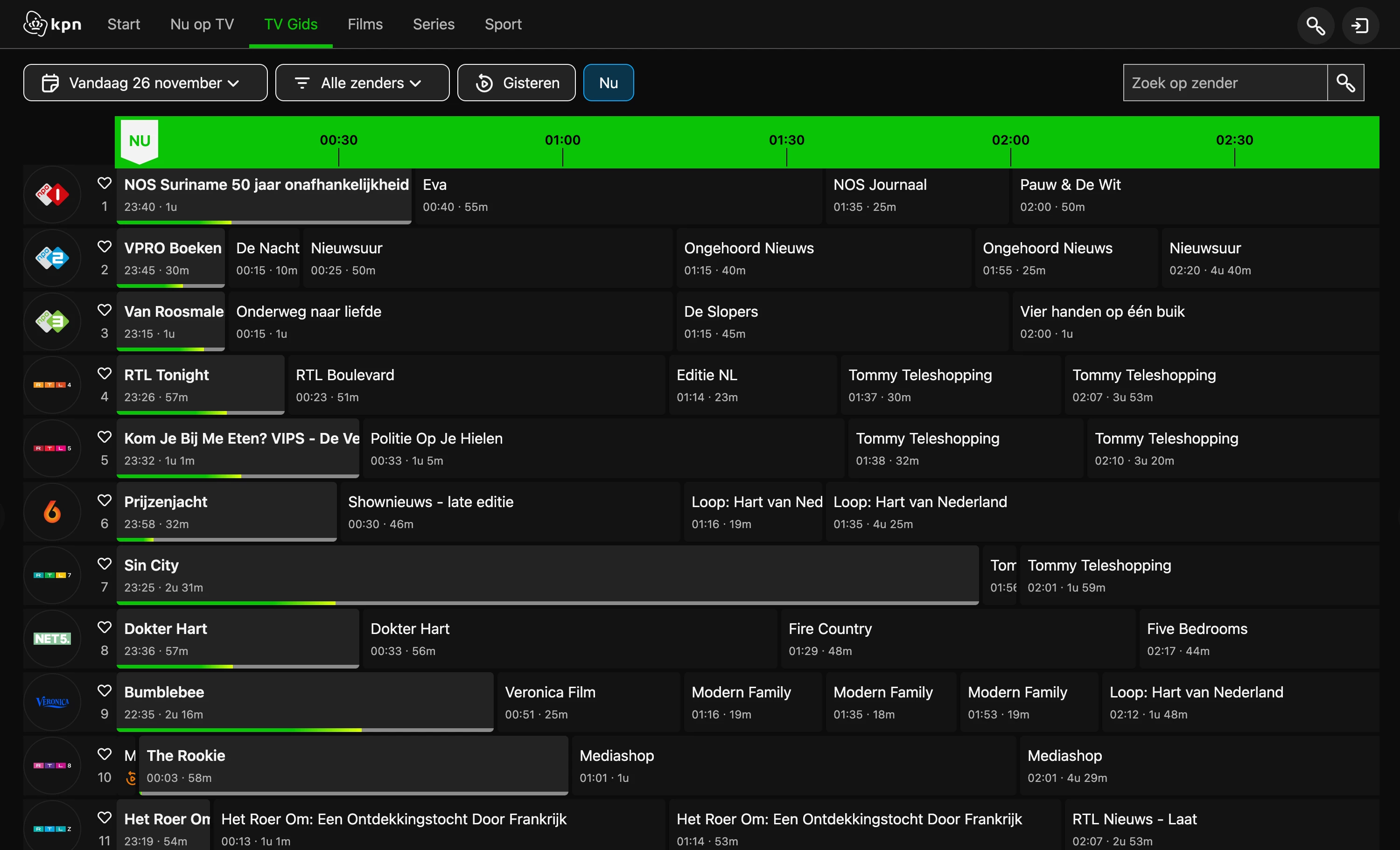 Gids op tv.kpn.com: voortgangsbalken al beter uitgelijnd met “NU” om 00:40 uur