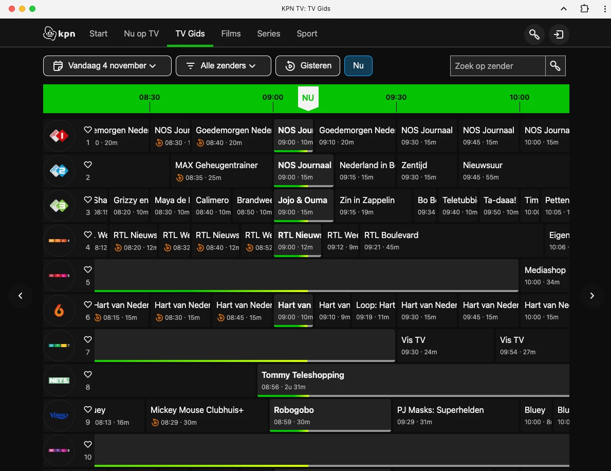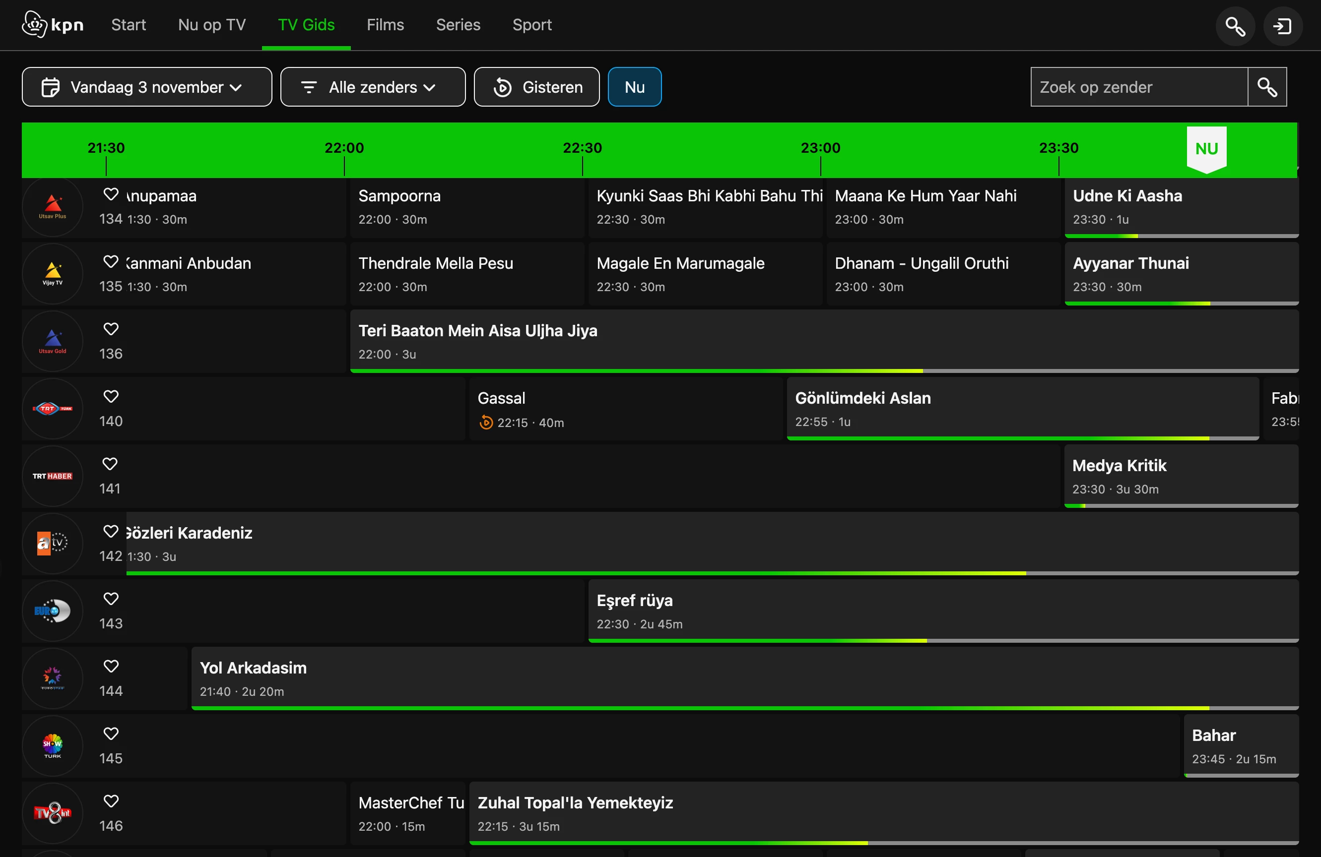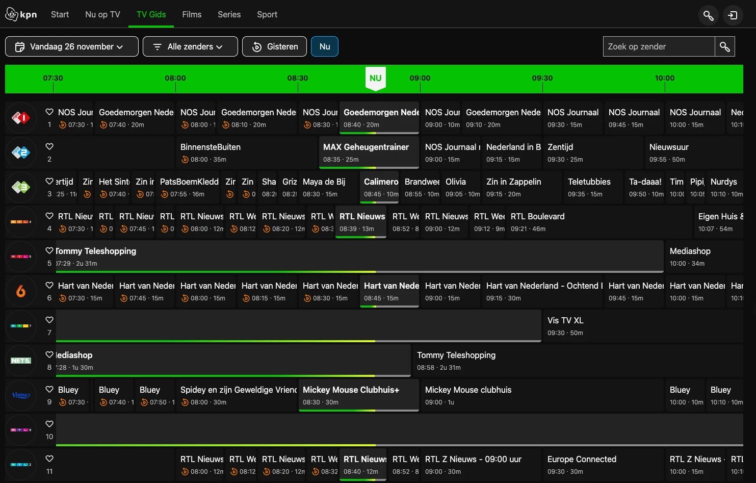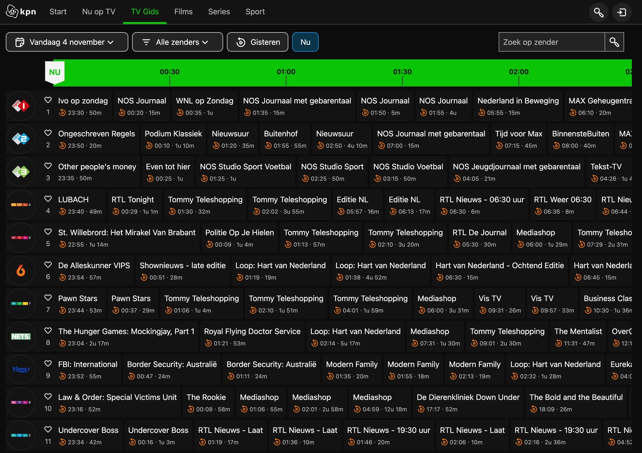 Gids op tv.kpn.com: voortgangsbalken al beter uitgelijnd met “NU” om 00:40 uur