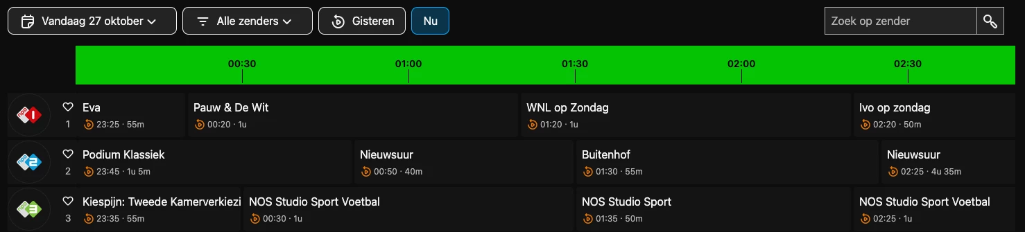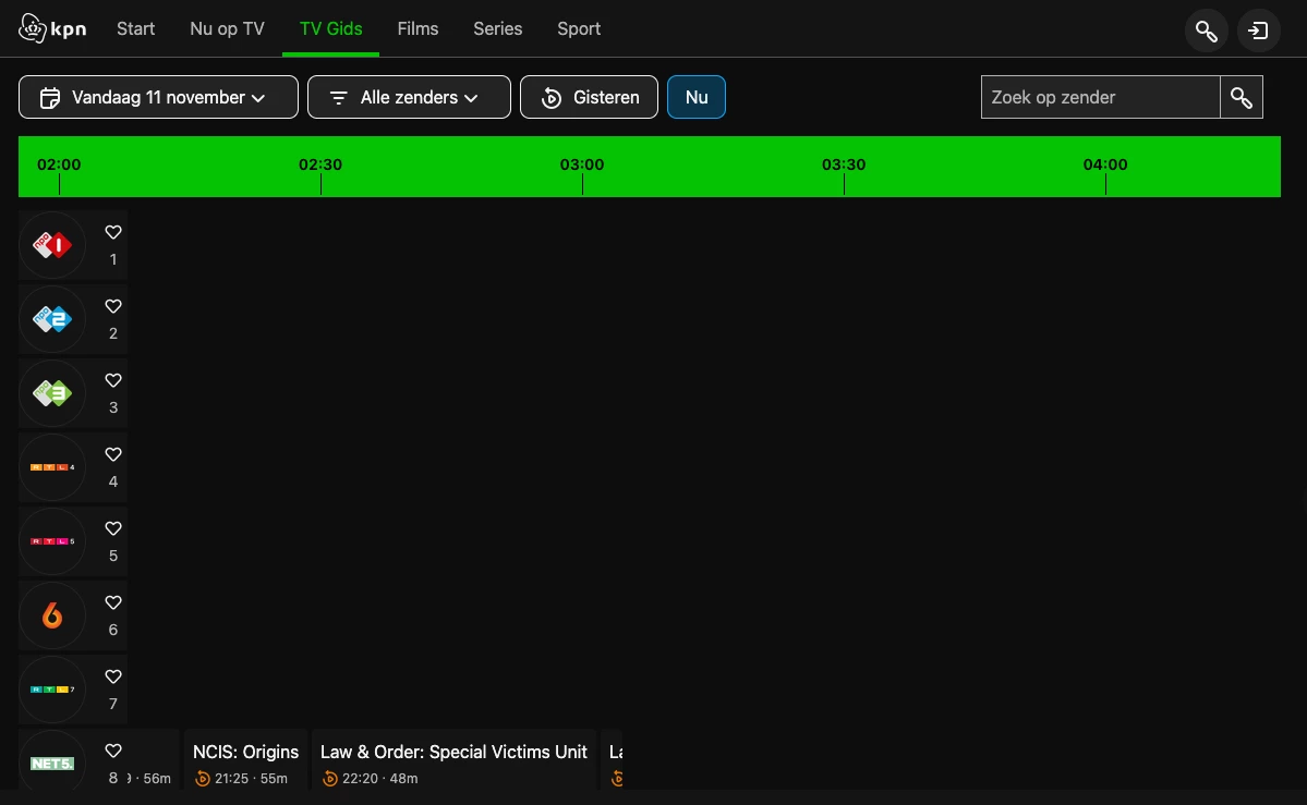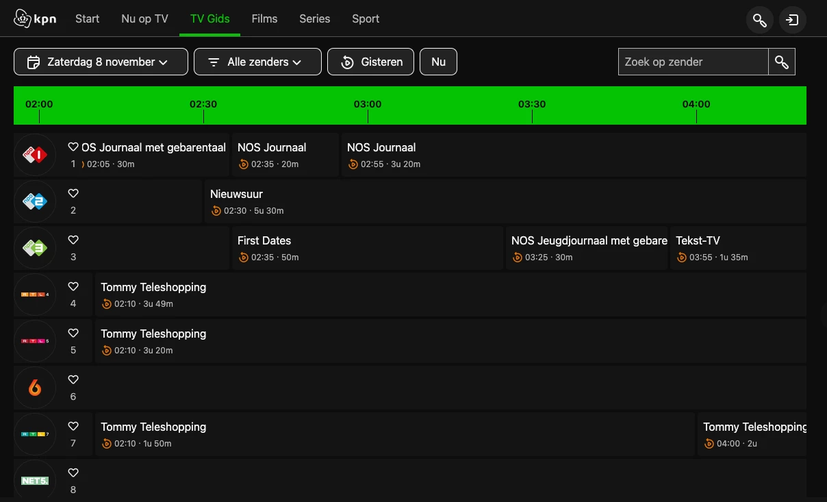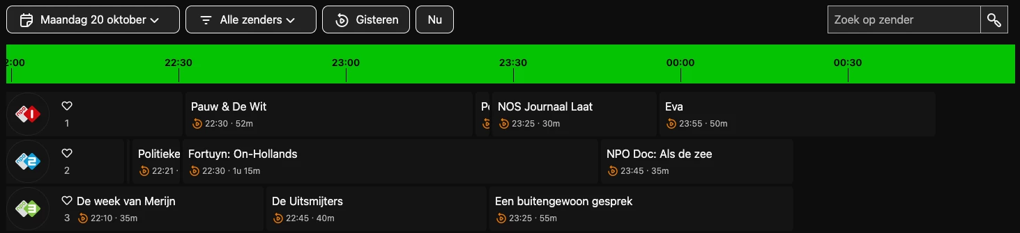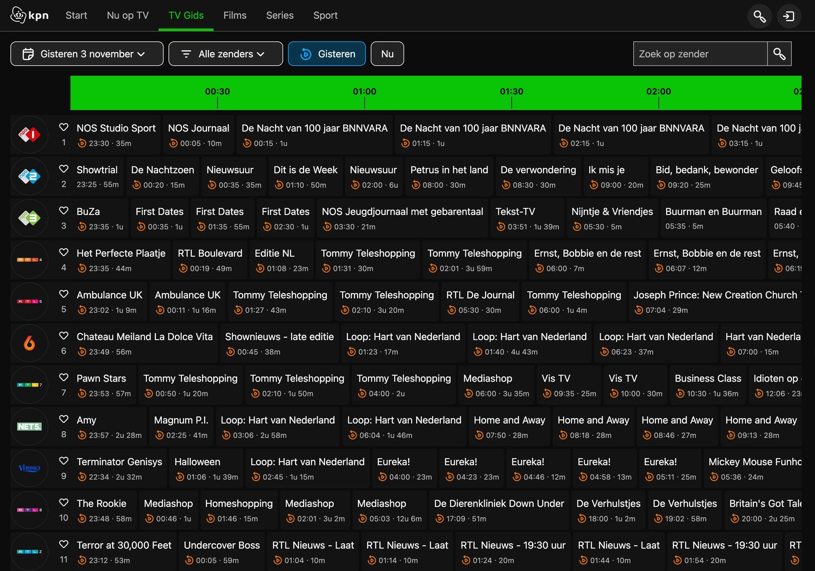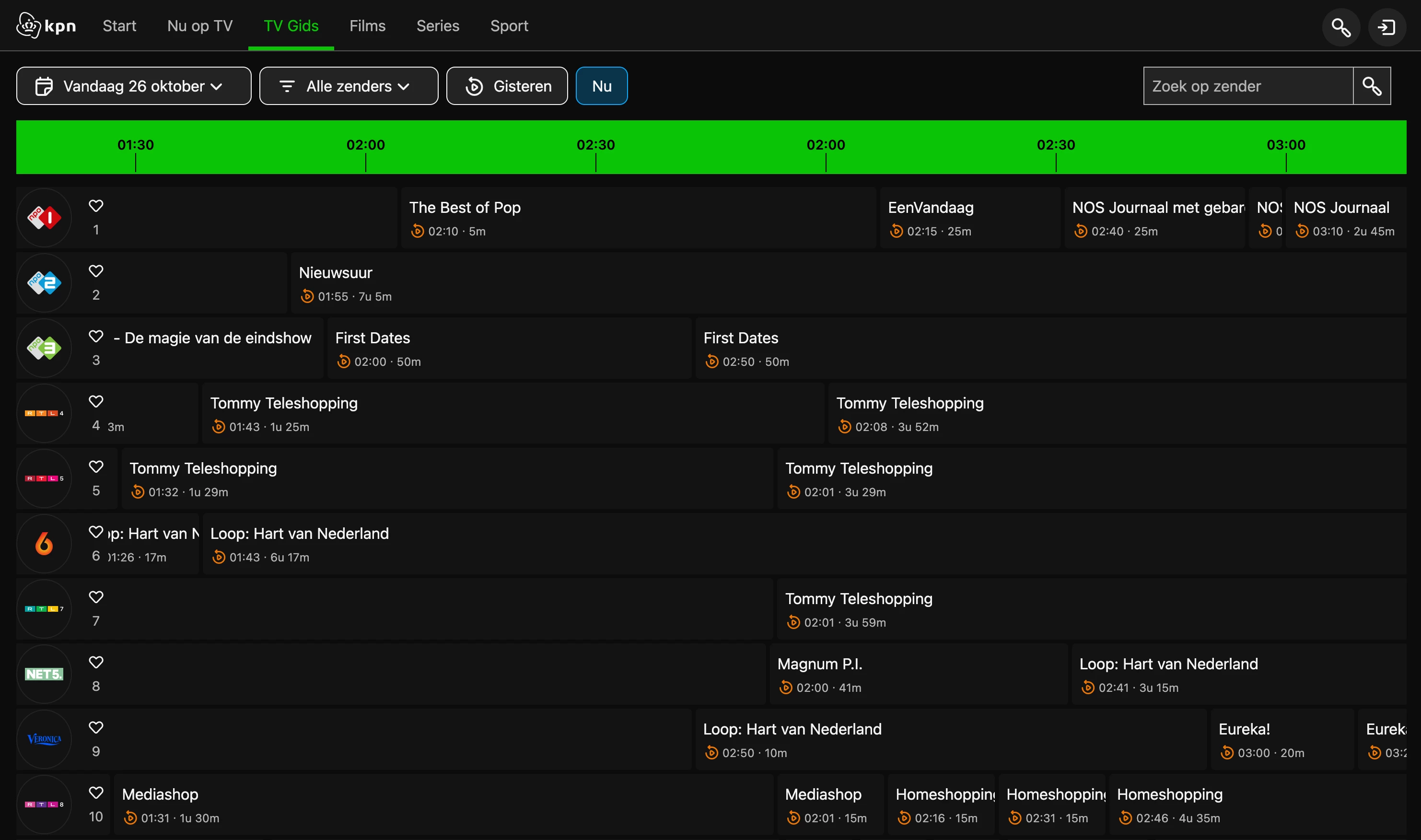 Gids op tv.kpn.com: leeg op primetime als je vlak na middernacht een dag teruggaat