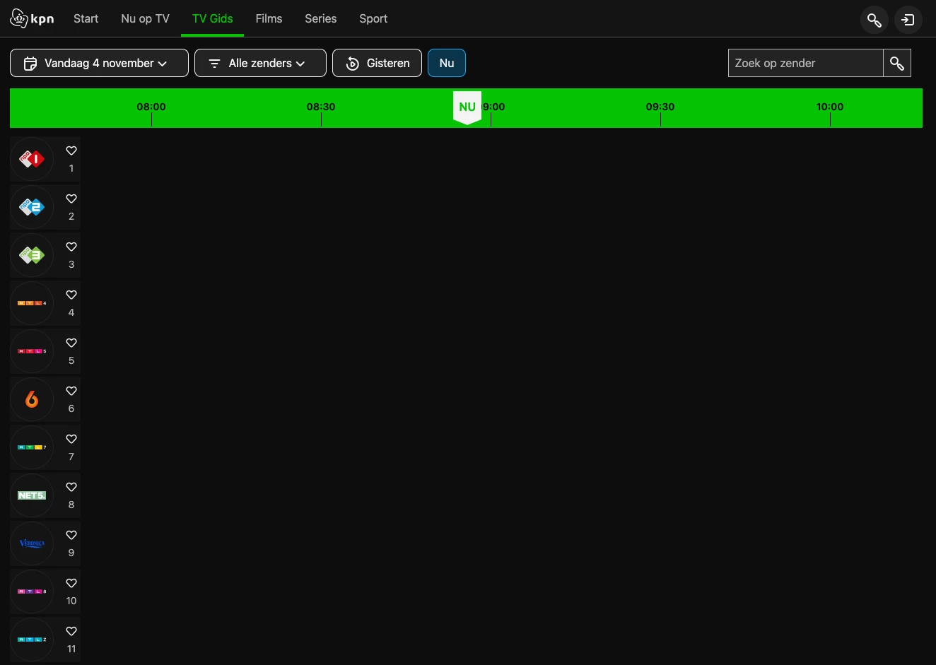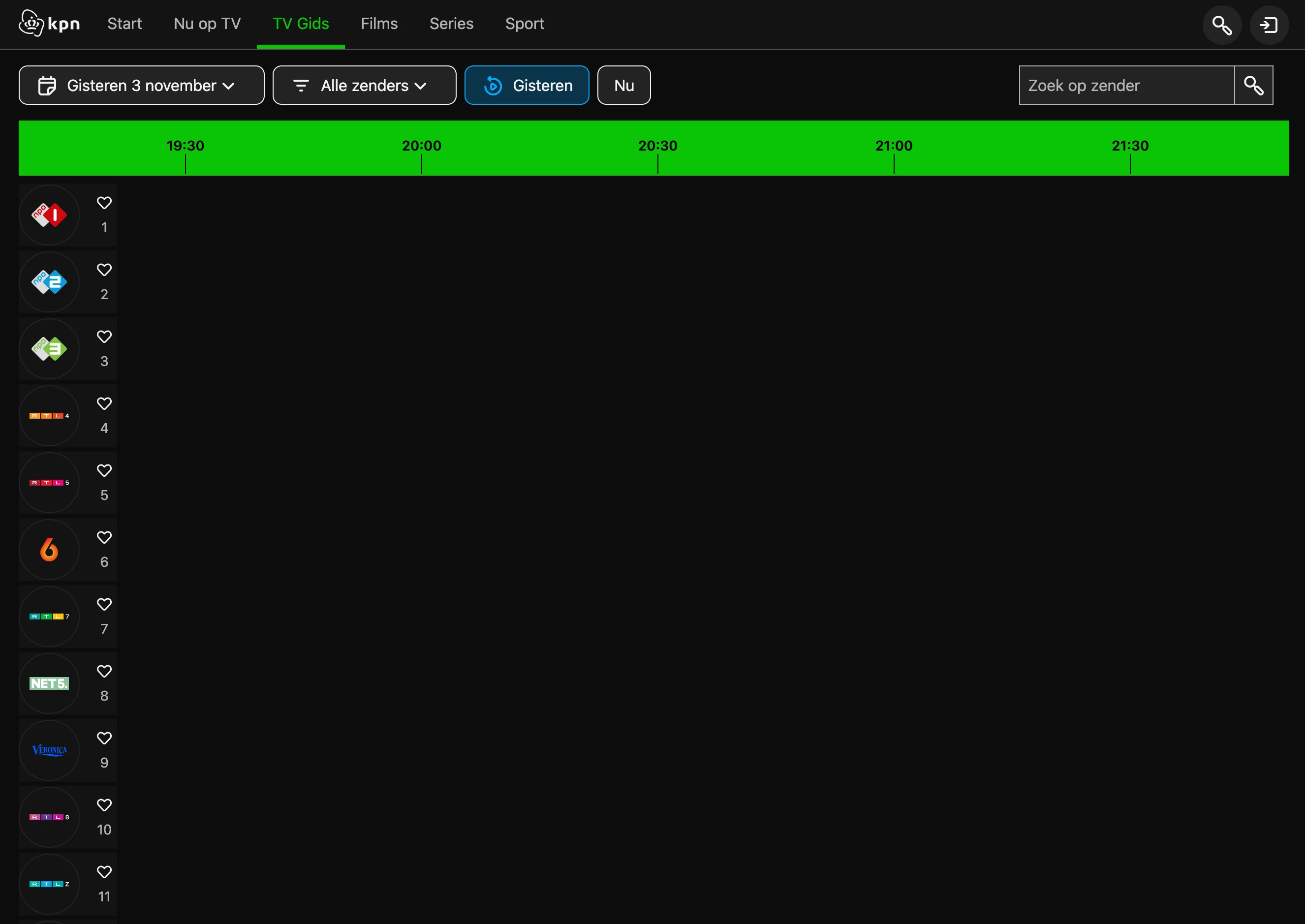 Gids op tv.kpn.com: leeg (omdat de programma’s links buiten beeld staan)