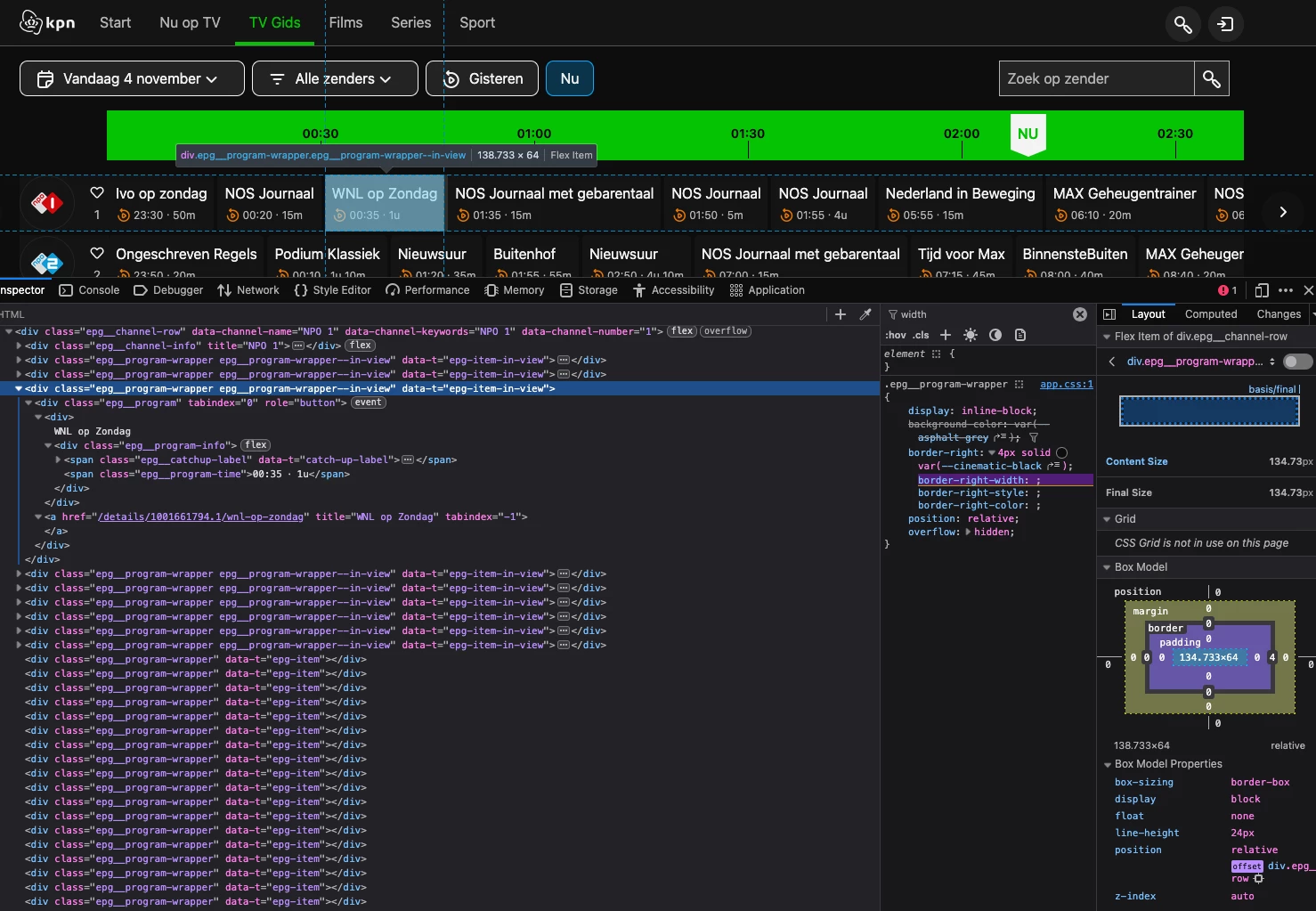 Gids op tv.kpn.com: na middernacht voor sommige dagen geen “style” in HTML