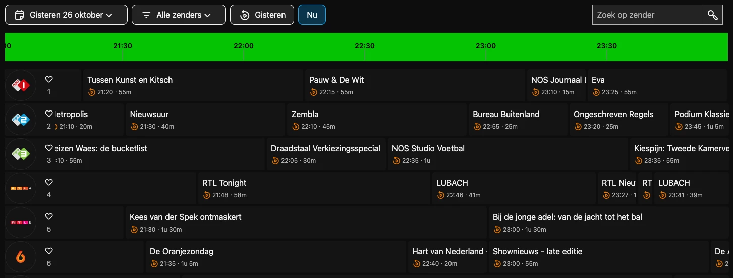 Inmiddels geen live programma’s meer die gisteren al begonnen zijn, en alle voortgangsbalken zijn nu goed uitgelijnd.
