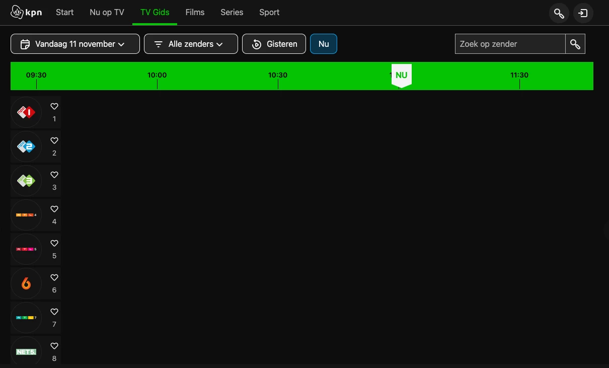 Gids op tv.kpn.com: leeg als je naar “NU” kijkt