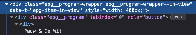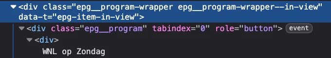 Op andere dagen op ongeveer hetzelfde moment (dus ook na middernacht) wél een element style, en daar wordt de gids dan wel goed weergegeven: