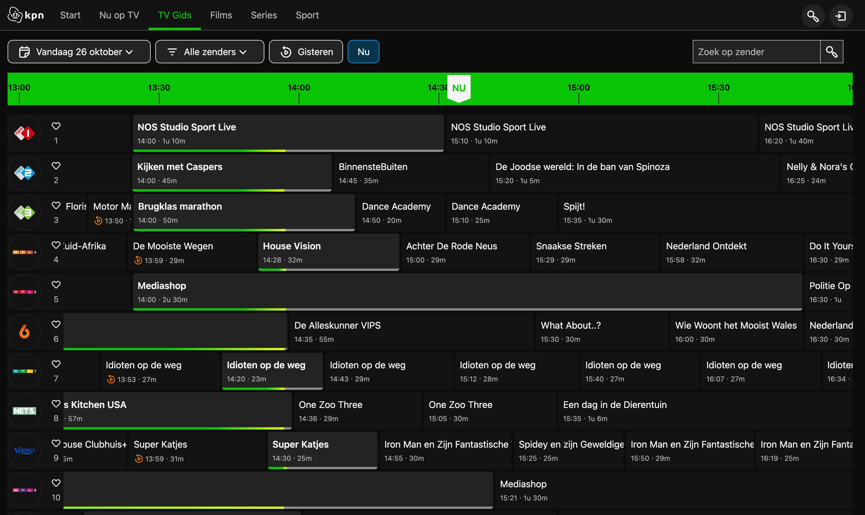 Gids op tv.kpn.com: starttijd van 14:00 uur staat weer goed in de tijd