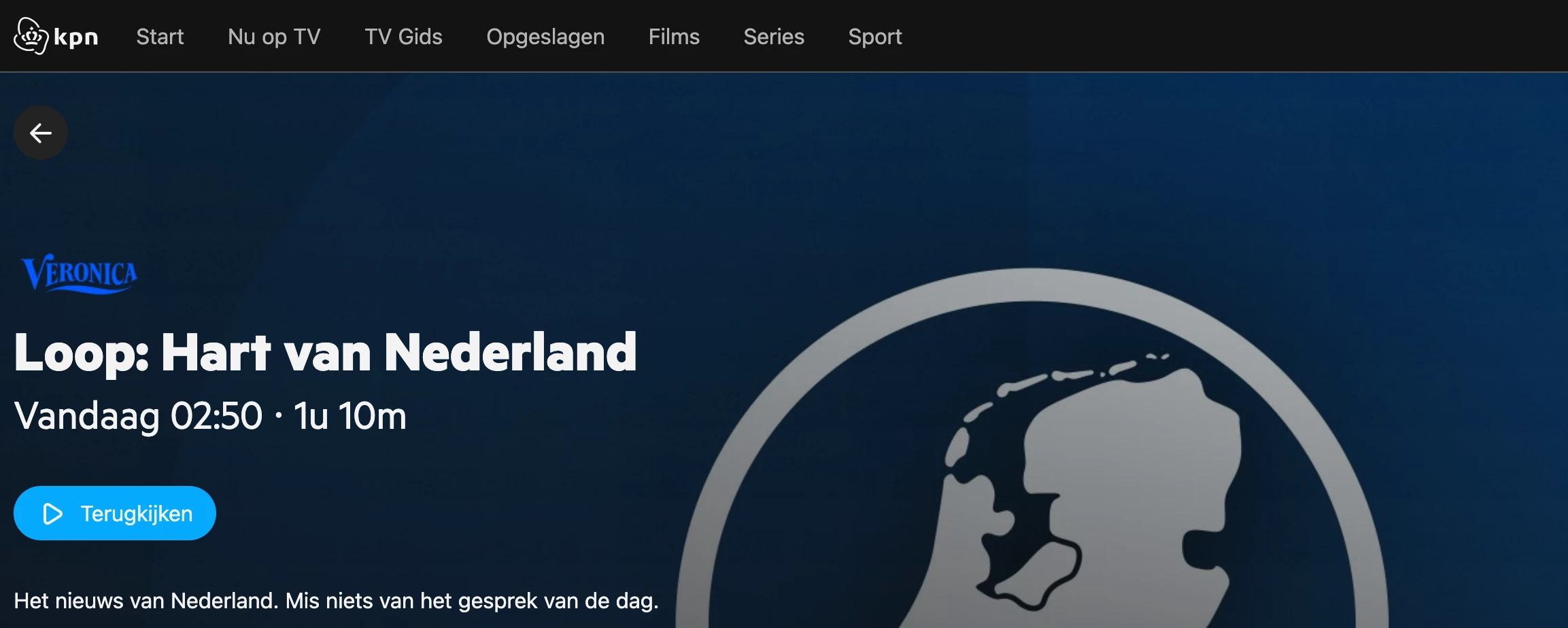 En “Loop Hart van Nederland” duurt volgens de omschrijving 1u 10m maar volgens de tijdbalk hierboven maar 10 minuten. Wat een chaos.