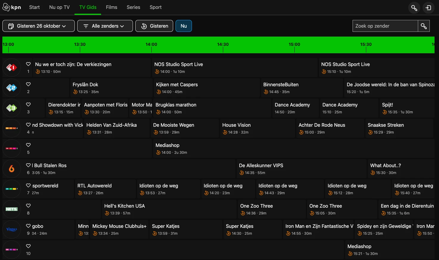 En waar gisteren de starttijd van 14:00 uur nog rond 13:26 uur in de gids stond, is dat vandaag wel goed als je naar gisteren kijkt: