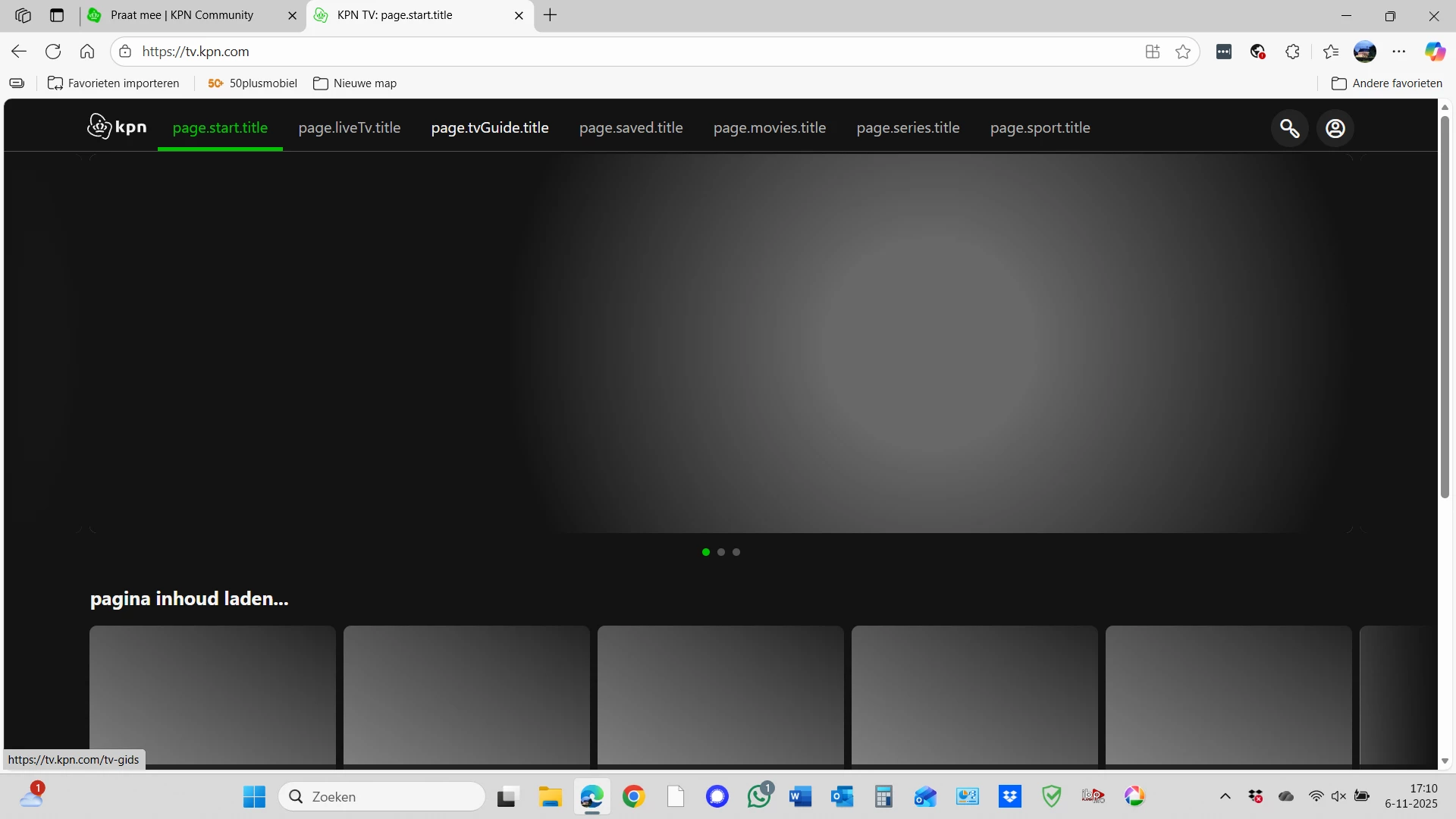 KPN lijkt iets gewijzigd te hebben op de tv.kpn.com website, wat waarschijnlijk deels geblokkeerd word door je webbrowser. Zie ook