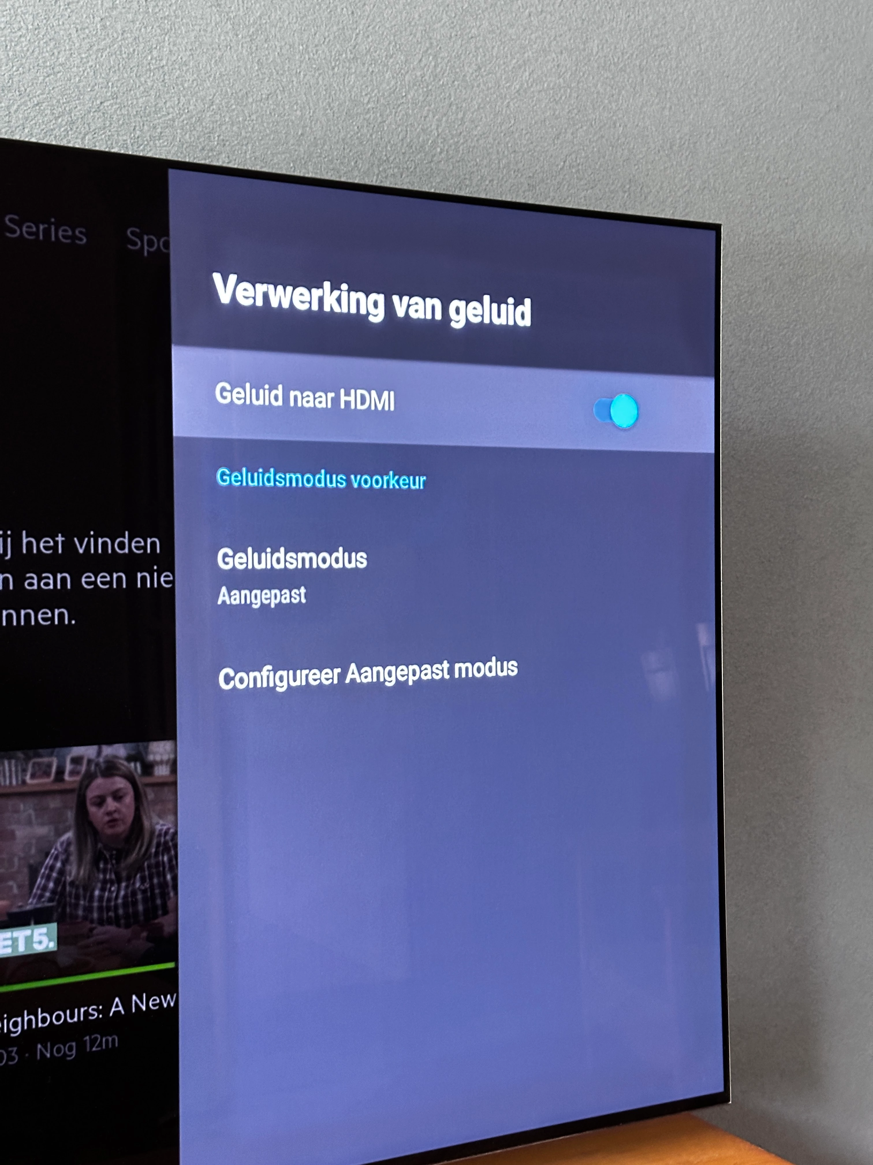 Via deze stappen kan je ontwikkelaarmodus aanzetten. Klinkt ingewikkeld, maar is heel makkelijk. Daarna verschijnt er op de pagina Instellingen > Apparaat > Apparaatvoorkeuren > Weergave en Geluid > Verwerking van geluid de mogelijkheid om het vinkje aan te zetten bij “Geluid van HDMI”.