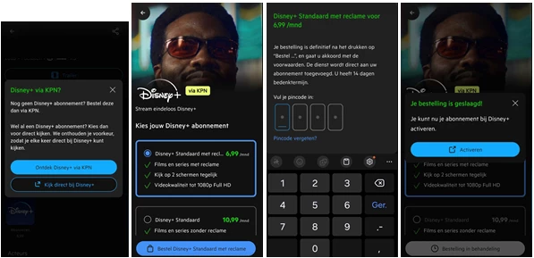Wanneer je een film of serie selecteert van een streamingdienst waarop je nog geen abonnement hebt, krijg je meteen de mogelijkheid om je hiervoor te abonneren zonder de app te verlaten. Zo regel je het eenvoudig en kun je direct verder met kijken.