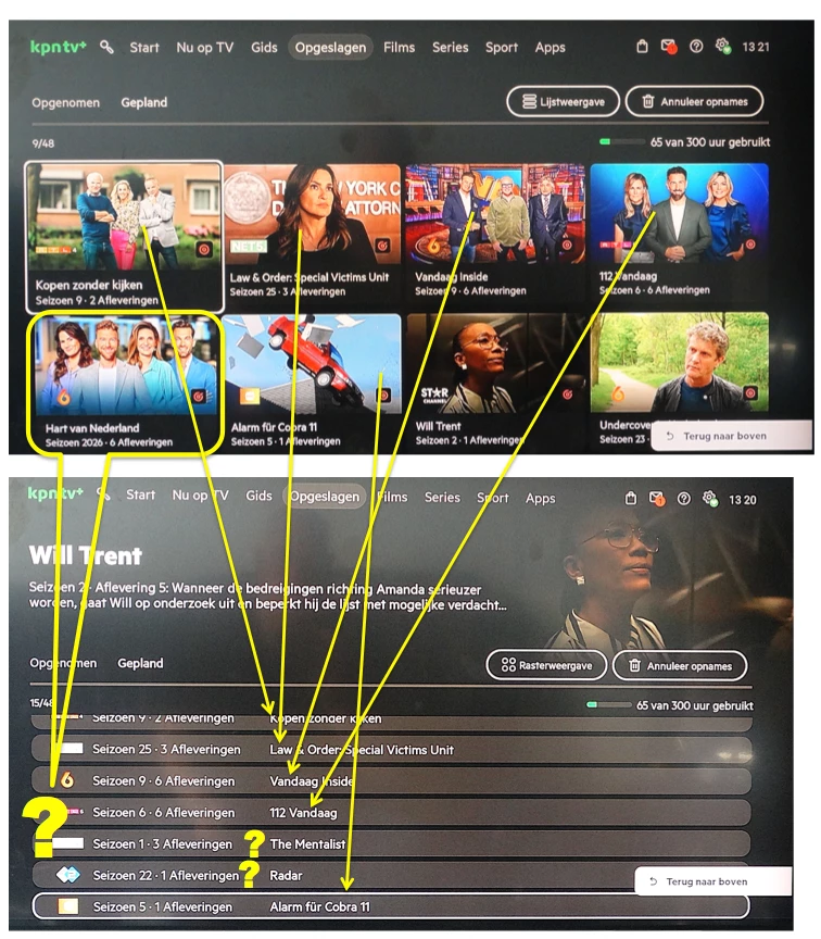 Verschil tussen raster- en lijstweergave bij opgeslagen items