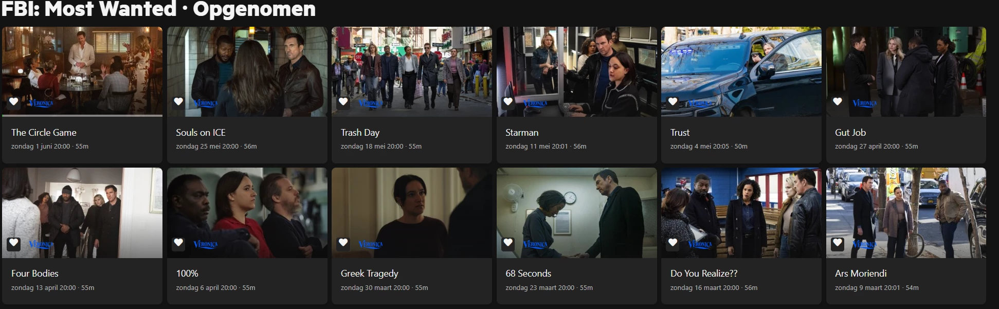 fbi opname van 20 april heb ik nog wel en je zit de afleveringen van fbi international en most wanted er omheen