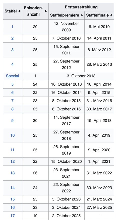 Dank voor je reactie! Het gaat mij om wat anders: ik kijk erg veel Duitse series, en omschrijvingen als S 16 zeggen mij niet zoveel, ik wil weten om welk jaar het gaat, of oftewel of ik het al gezien heb.