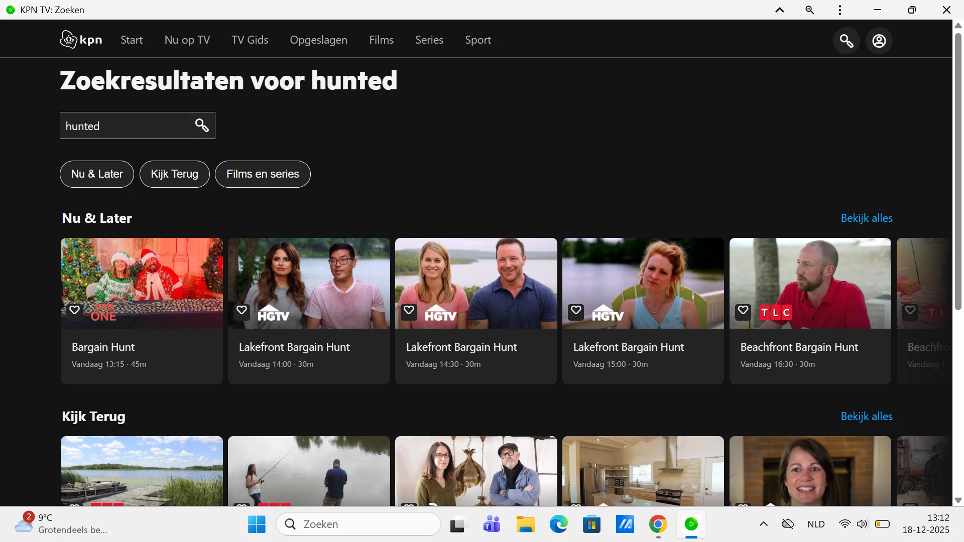 Hunted ligt ingewikkelder. Dat is een gids fout (zowel 15-dec als 22-dec zijn momenteel nog Seizoen 10 Episode 4). Derhalve wordt de aflevering van 22-dec als herhaling beschouwd en derhalve niet getoond in zoekresultaten. Ik heb het doorgegeven aan de collega's over de gids. Zodra dat seizoensnummer weer klopt, is het ook geen ‘herhaling’ meer en is die meteen weer vindbaar in zoekresultaten.