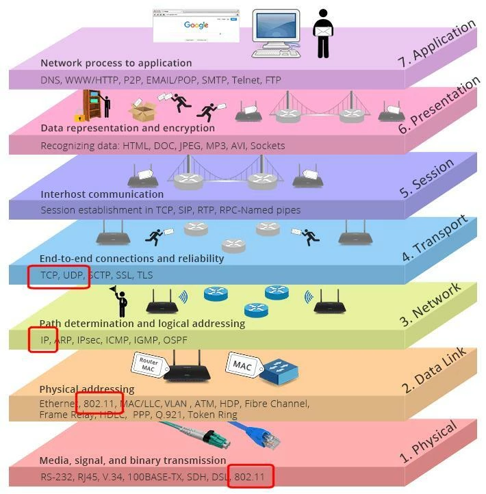 WiFI is niks meer dan een signaaldrager een transport methode. Er worden tcp/ip en udp pakketjes getransporteerd.
