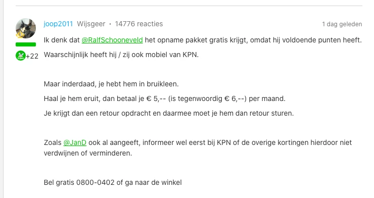 Fijn om te horen dat alles duidelijk is! 😊 Als je het prettiger vindt, kun je ook een belafspraak maken. Dan word je op een moment gebeld dat voor jou het beste uitkomt. Zo hoef je niet speciaal naar de KPN‑winkel en weet je toch zeker wat in jouw situatie het meest van toepassing is.