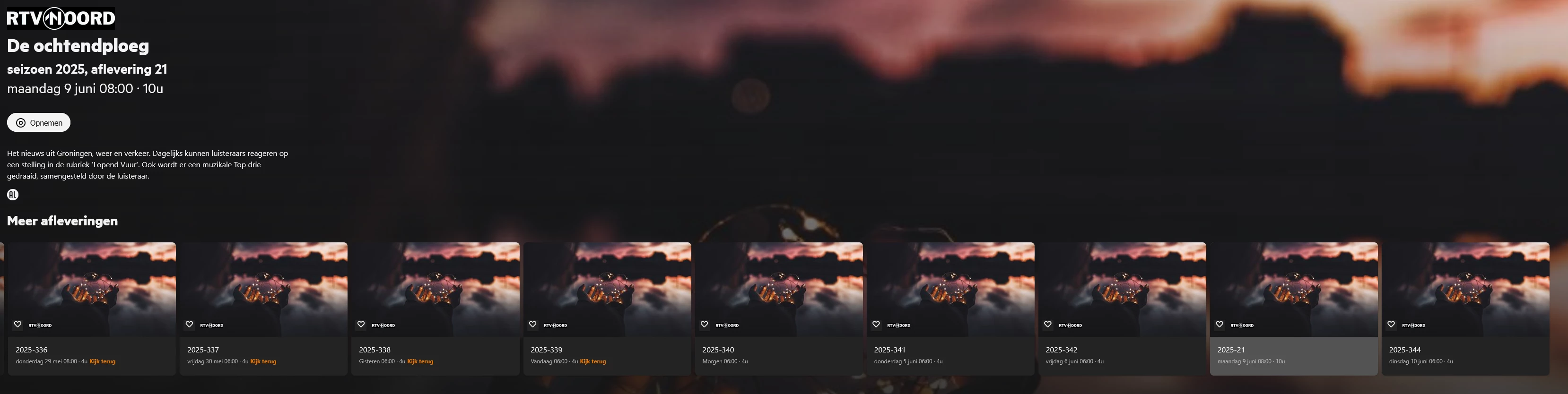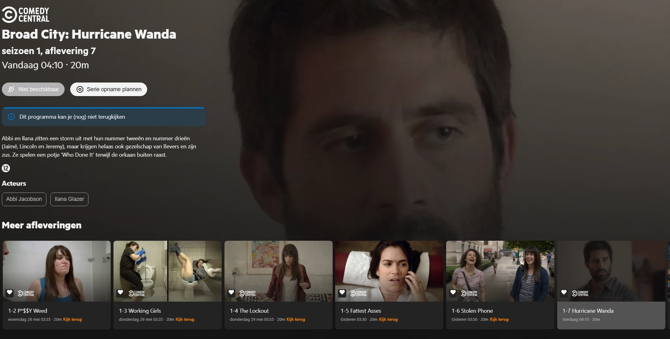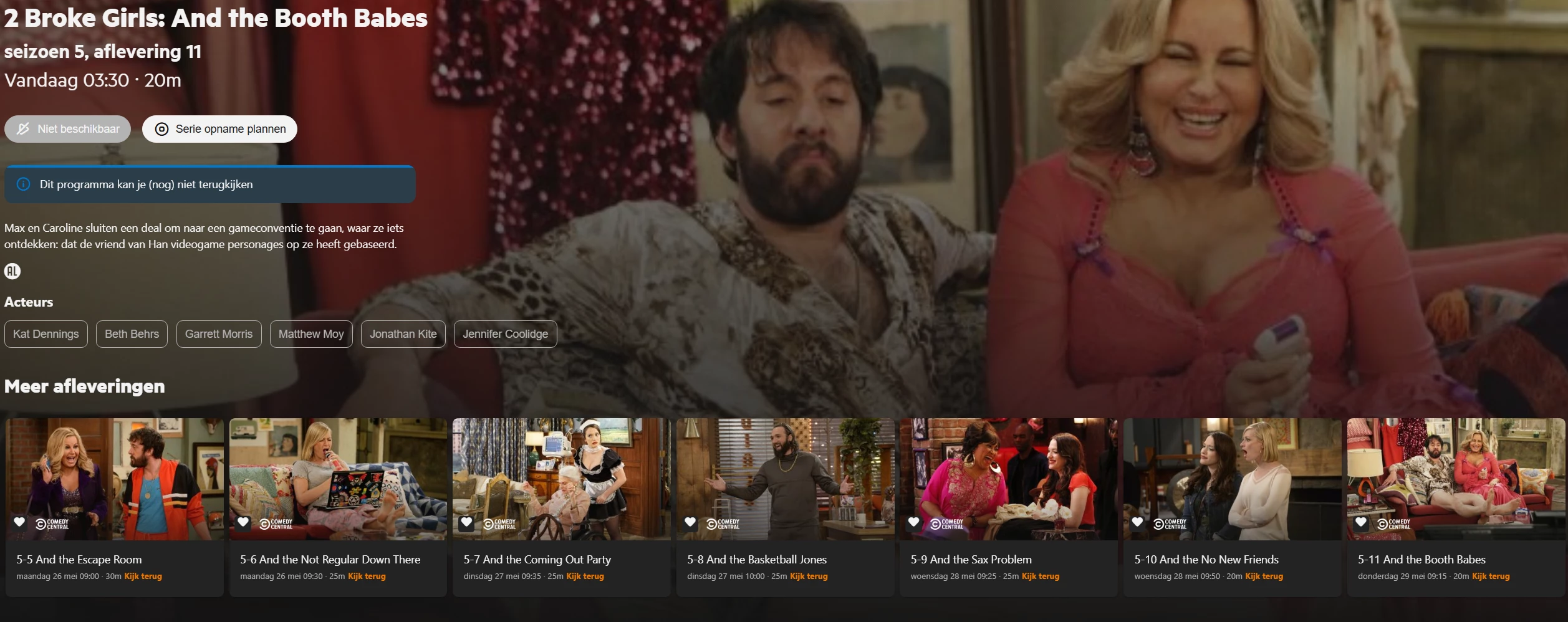 En wat je daar ziet is de aflevering die het verst in de toekomst gepland staat. Omdat 1 niveau hoger ‘Opgenomen’ is geselecteerd (en niet ‘Gepland’) verwacht ik info over een opgenomen aflevering te zien. En misschien nog beter omdat de hele serie is geselecteerd: geen info tonen.