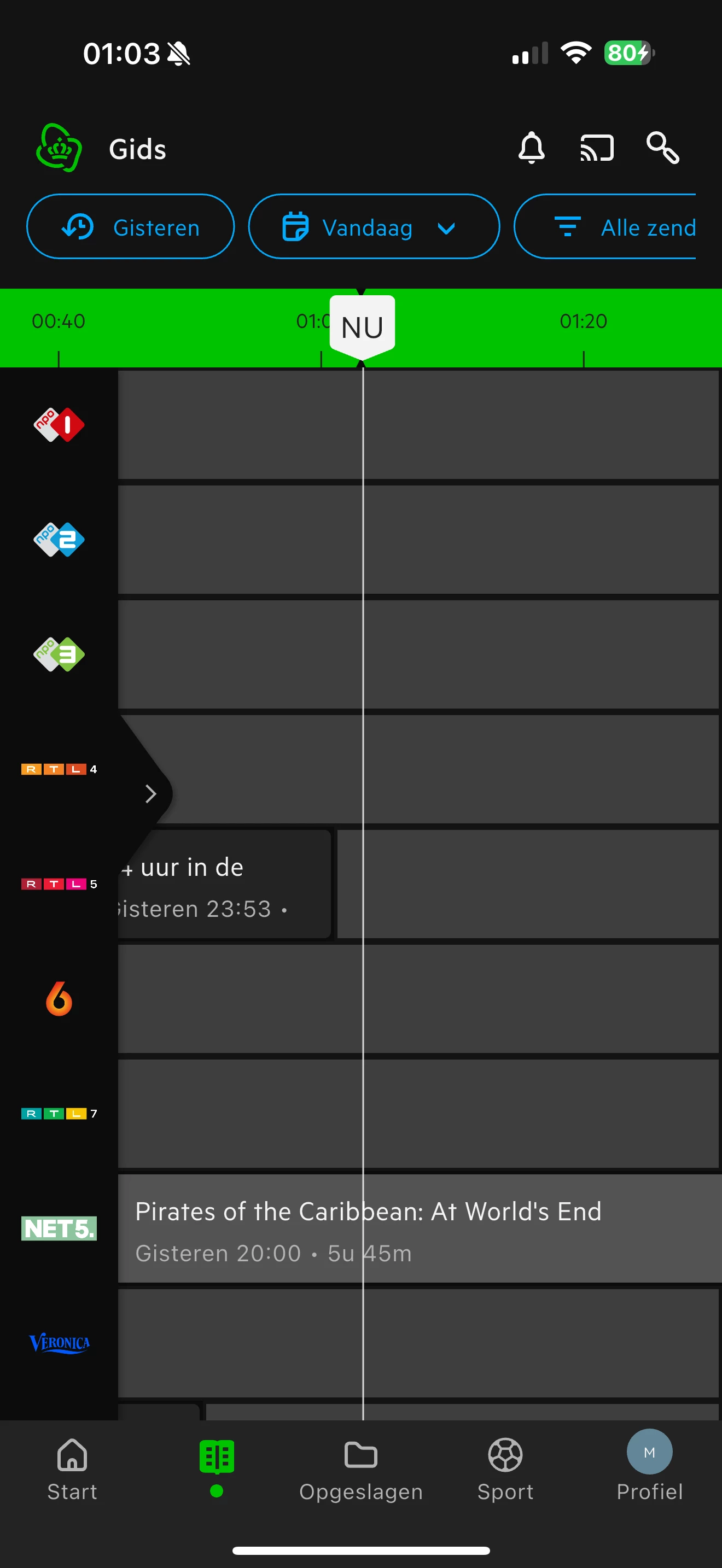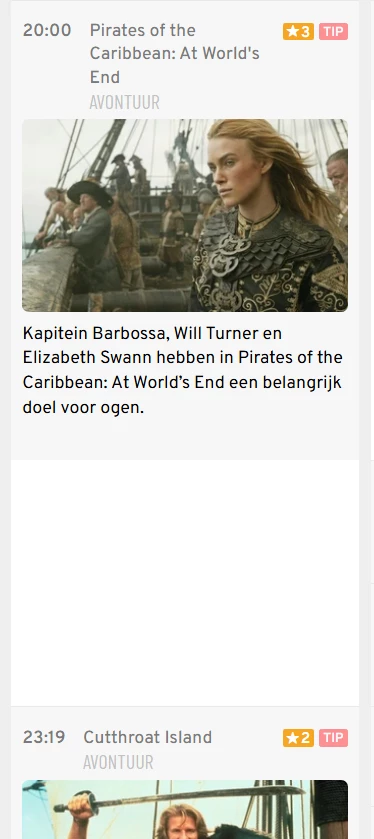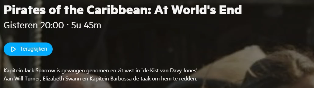 In de tv gids staat piraten of the caribean maar dat wordt niet uitgezonden.